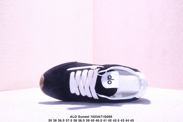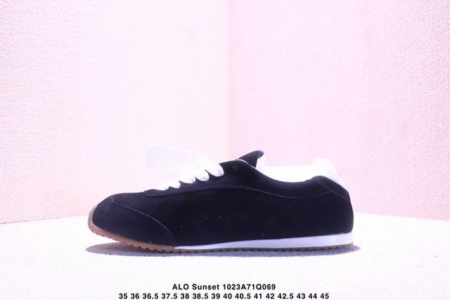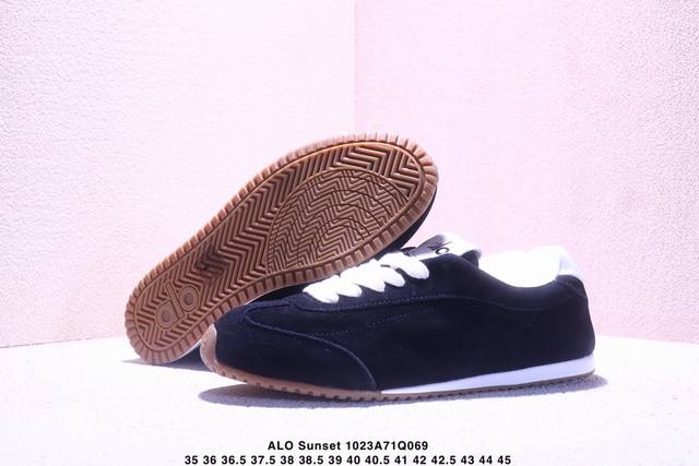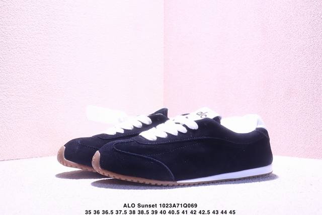 Alo Yogaalosunset New Sneakers, Suede Low-Top Thin-Soled Casual Shoes, Minimalist Style. These shoes feature a soft suede upper with a breathable lining and a cushioned sole, suitable for daily commutes or weekend outings. The brand primarily targets the Asian market, with its production and design team located in South Korea, emphasizing meticulous detail and a combination of seasonal trends. The upper is made of delicate suede, soft to the touch and with a premium feel. The light brown colorway is particularly versatile. The sole has a certain thickness but isn't bulky, offering a slight bouncy feel, like your feet are being gently supported. What I love most is the design detail: the slightly tapered heel makes the ankle appear longer, creating a stylish look when paired with skirts or jeans. Size: See picture. Xm1023Q069