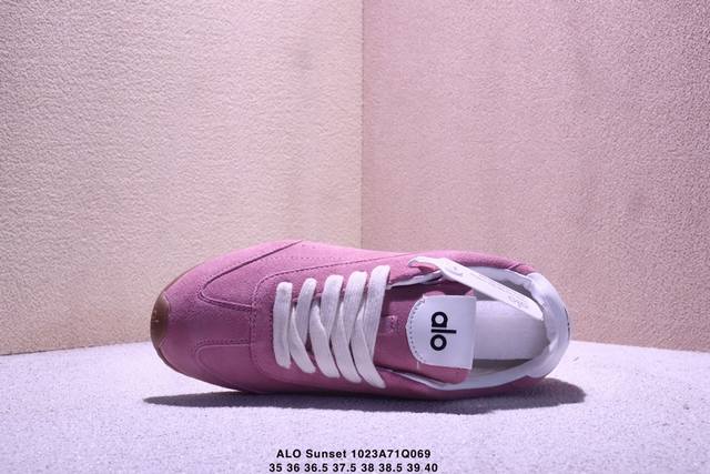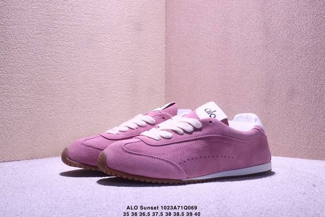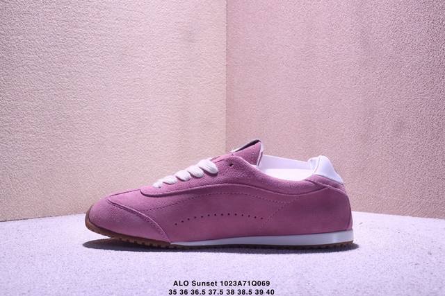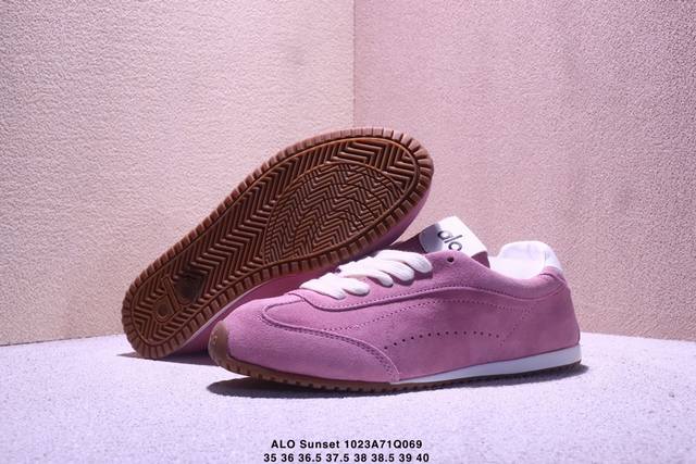 Alo Yogaalosunset New Sneakers, Suede Low-Top Thin-Soled Casual Shoes, Minimalist Style. Made with soft suede and a breathable lining, the sole offers some cushioning, suitable for daily commutes or weekend outings. The brand currently focuses primarily on the Asian market, with its production and design team located in South Korea, emphasizing meticulous detail and a combination of seasonal trends. The upper is made of delicate suede, soft to the touch and with a premium feel. The light brown colorway is particularly versatile. The sole has a certain thickness but isn't bulky, offering a slight bouncy feel, like your feet are being gently supported. What I like most is its design detail: the slightly narrowed heel line makes the ankle appear longer, creating a stylish look when paired with skirts or jeans. Size: See picture. Xm1023Q069