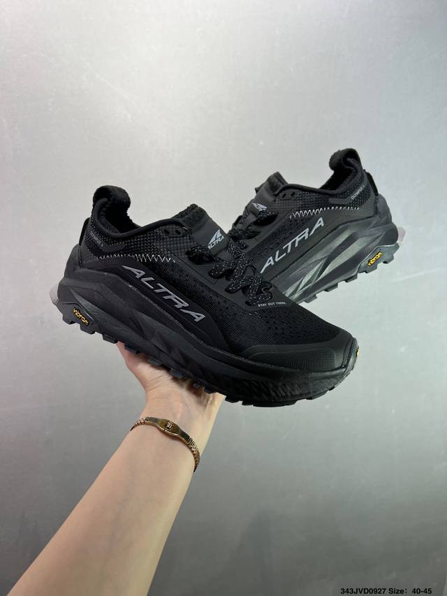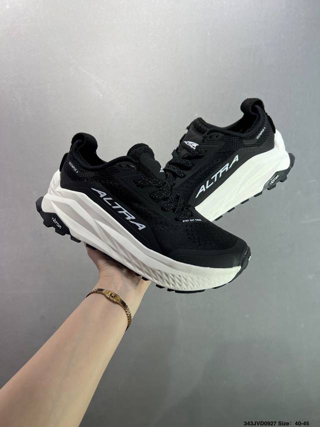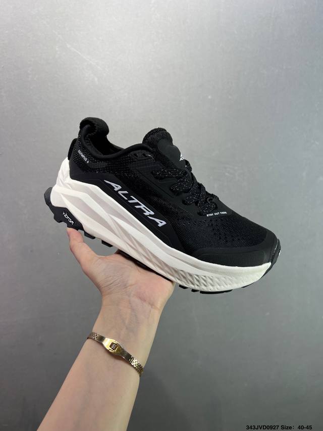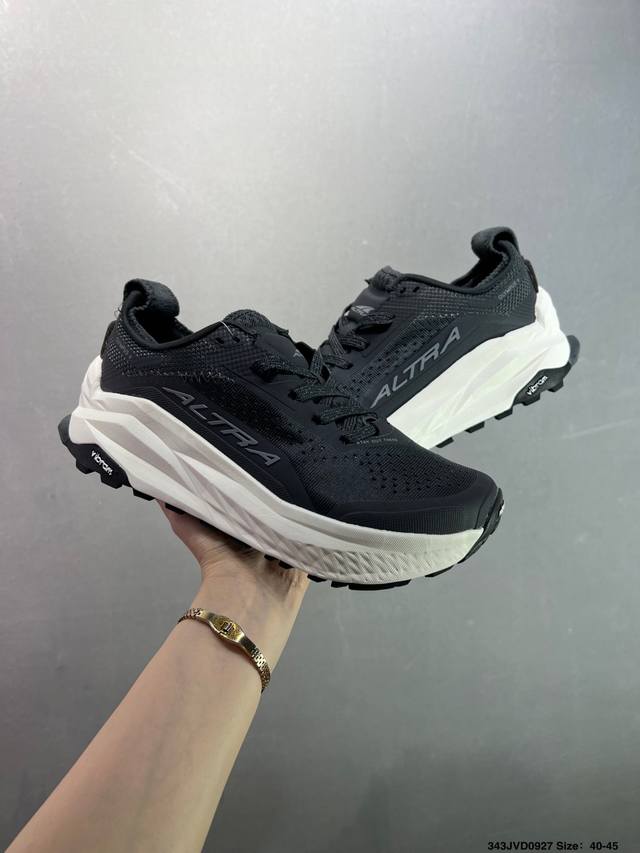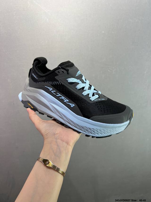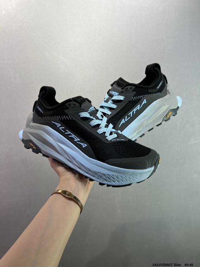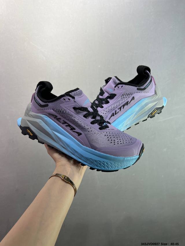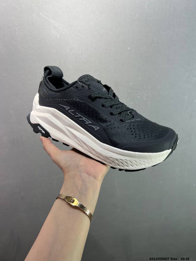 The full-length carbon plate high-tech outsole features a Maxtrac midsole and Vibrammegagrip outsole, making it suitable for long-distance trail running. Altra's signature Footshape wide toe box is perfect for runners with wide feet or those who need their toes to stretch naturally. The Vibram outsole provides superior grip, adapting to mud, gravel, and slippery roads. The Gaitertrap upper design prevents the intrusion of gravel.