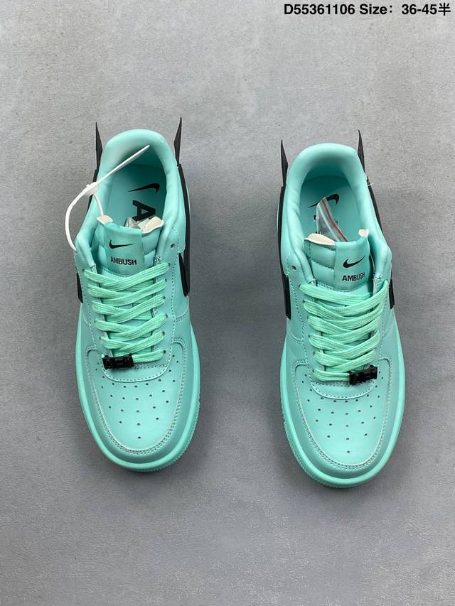 Ambush X Nk Air Force 1 Low, a versatile low-top casual sneaker collaboration featuring a large Swoosh. Under Yoon Ahn's auspices, Ambush has established itself as a major player in the Japanese streetwear ecosystem while significantly expanding its East Asian presence in the US recently through collaborations with the Air Adjust Force and a range of Dunks. Expected to debut this holiday season, the brand now brings its talent to the Air Force 1, marking the first time in four years of this young partnership that the two groups have collaborated. In addition to the previously seen "white and black" Af1, the latter's construction consistently utilizes premium tooling. The upper is crafted from high-end rolled leather, while Ambush-branded heel clips and elongated motorcycle tailpipe Swooshes are also included. Infusing the design shown below with personality, this deep black product enjoys a complete tonal treatment of the aforementioned shades, except for its midfoot check and upper tongue branding. It is brightened with crisp white details and chrome dublessings. "Royal Blue" anchors everything from the insole to the second-wear sole unit, while the same embellishments as above, including the heel tag, finish with a nominal yellow shading. Product Code: Dv3464-300 Sizes: 36 36.5 37.5 38 38.5 39 40 40.5 41 42 42.5 43 44 44.5 45 Code: D55361106