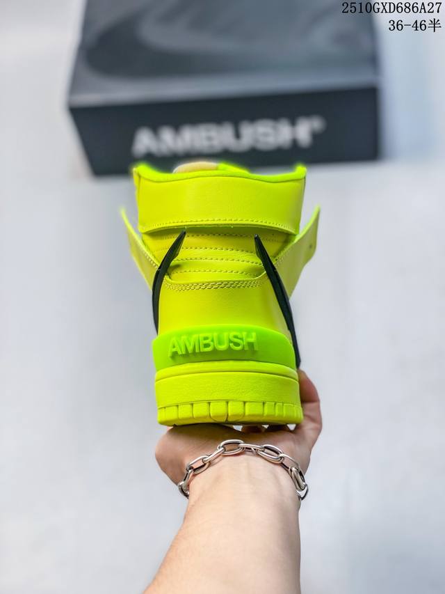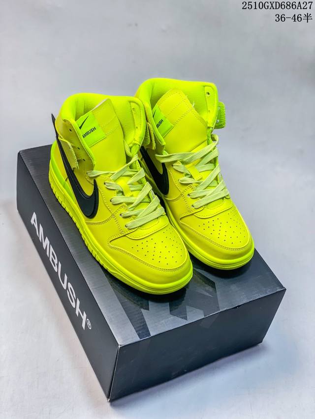 Ambush X Nk SB Dunk High Skateboard Shoes, High-Top Men's and Women's Sports Shoes, Collaboration with Kris Wu's Basketball Shoes. Based on the classic Dunk Hi, this shoe features a high-quality pebbled leather upper with bright colorways, exuding street style. The biggest highlight is the Swoosh logo on the side, extending to the heel and beyond the shoe body, creating a bold and eye-catching design. The tongue and heel are decorated with the Ambush logo, making the collaboration unmistakable. Product Code: Cu7544 Sizes: 36 36.5 37.5 38 38.5 39 40 40.5 41 42 42.5 43 44 45 46 10Gxd686A27