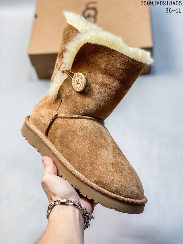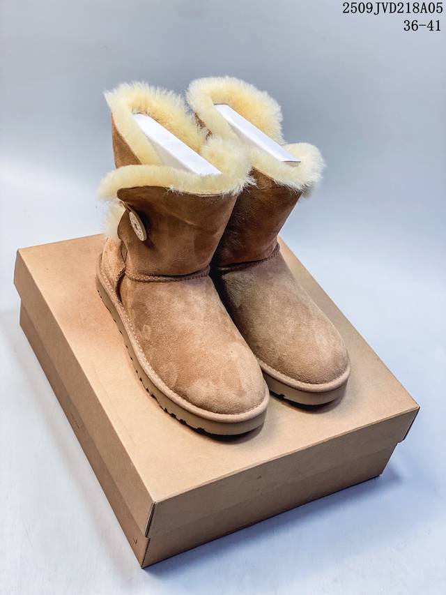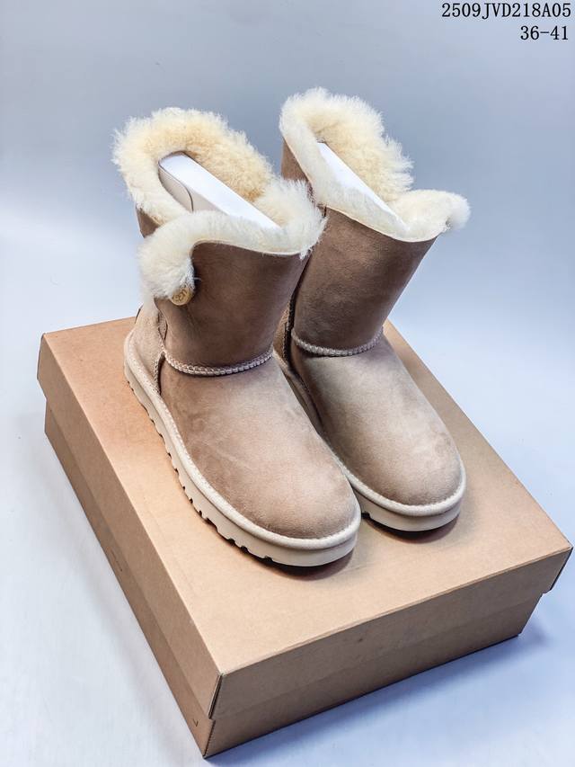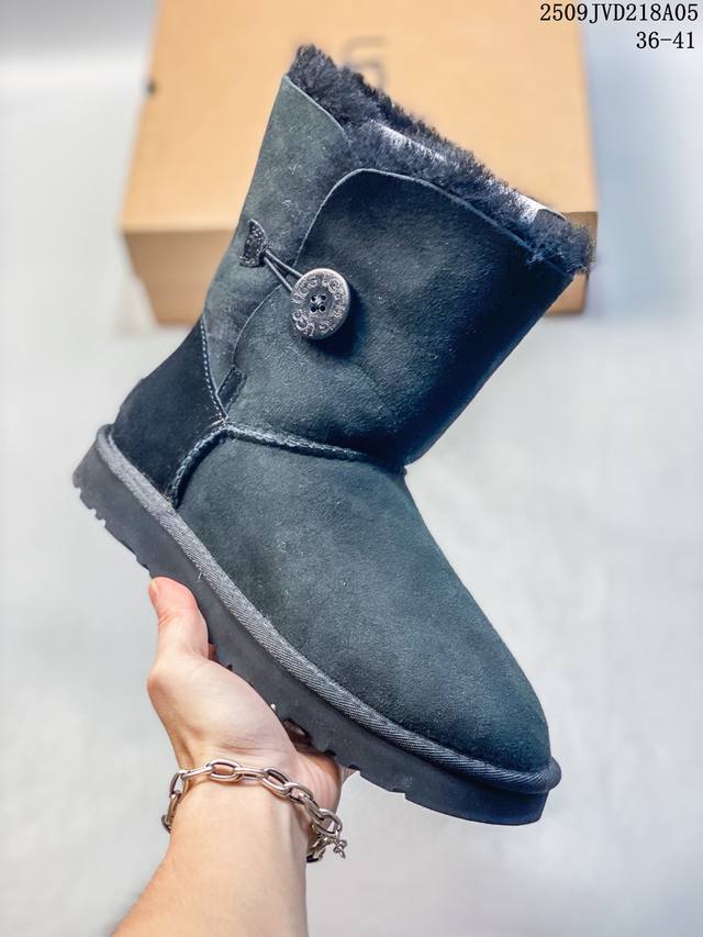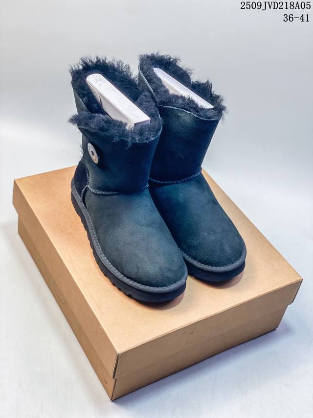 American light luxury brand Ugg W Mini Bailey Button Bling Mini Bailey button crystal style single ribbon series mid-calf plus velvet casual versatile high-top boots 910740Asqwu 36-41