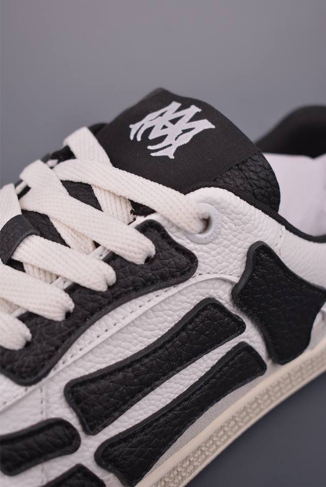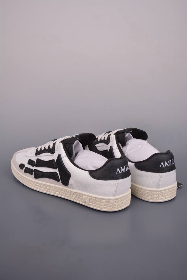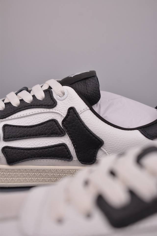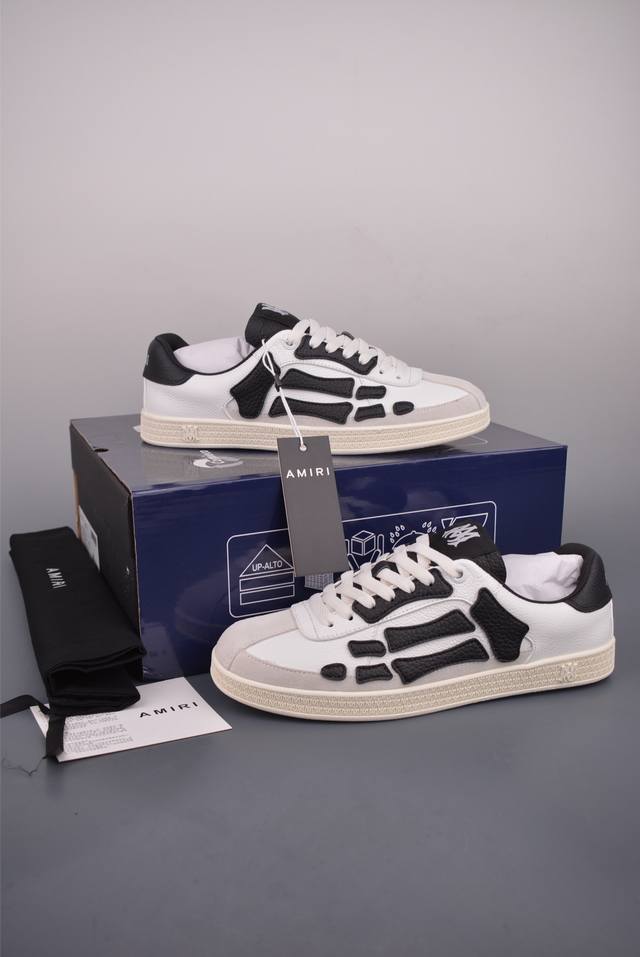 Amiri Skeleton High, made in Guangdong (manufactured by a large factory). Skelter Top Sneakers (low-top). Correct tongue outward turn detail , correct bone shape. Top-grain cowhide upper + high-density breathable mesh. The side bone design uses two pieces of cowhide bonded together for better three-dimensionality. Leather cuts are evenly finished with oiled edges. Complete packaging, double-layered thickened leather. Official product number: Ecap520291111. Sizes: 38, 39, 40, 41, 42, 43, 44, 45 (true to size).