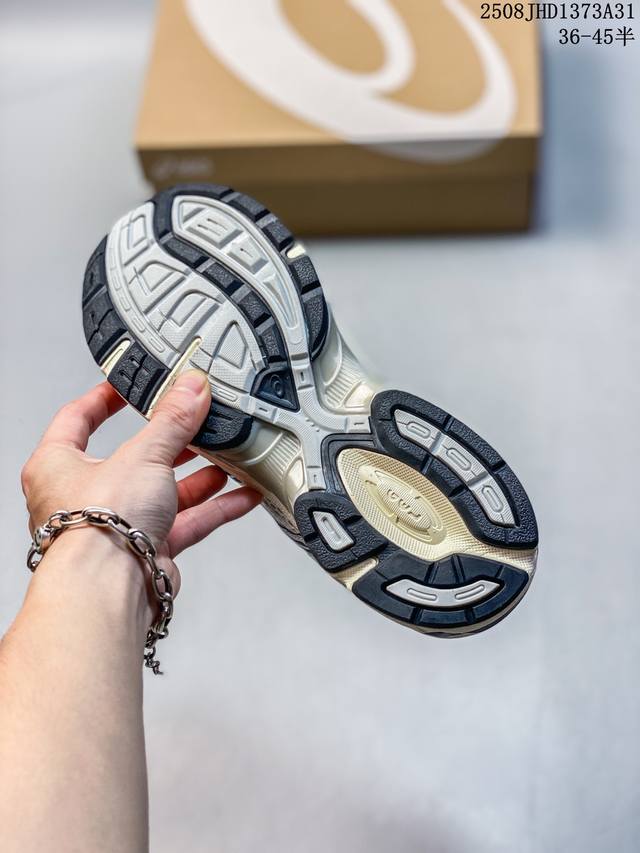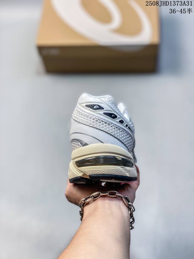 Asics Gel-1, ASICS' new running shoe. The Asics Gel-1 is a classic entry into the retro aesthetic, capturing the epochal style of the late 2000s. The shoe's upper features mesh and leather interwoven throughout. The iconic Asics tiger claw logo appears on the side of the shoe amidst the silver metallic lines, creating a retro aesthetic and adding depth to the shoe's overall aesthetic. Furthermore, both colorways of the Gel-1 feature an Ortholite insole, a Gel midsole, and a durable outsole. This ensures comfort while providing the cushioning and durable traction needed for everyday exercise. Size: See image. Code: 08Jhd1373A31.