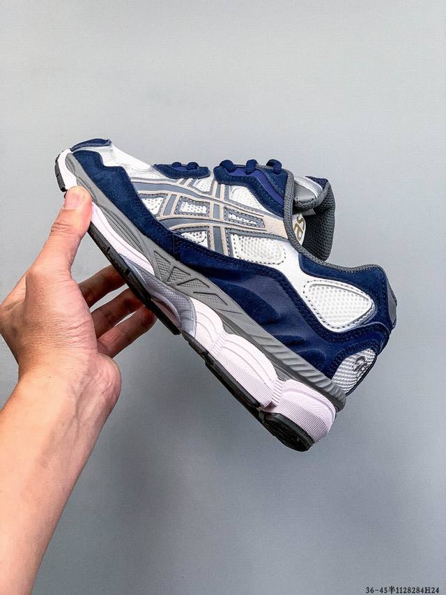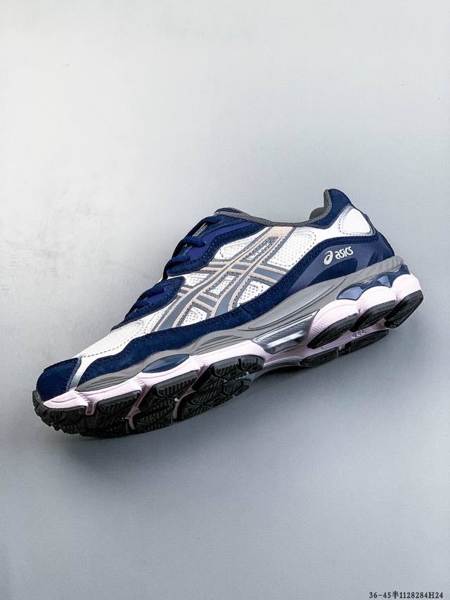 Asics Gel-Nyc 2055 features a breathable mesh upper with some synthetic leather accents, and utilizes the new Ahar+ rubber material for enhanced durability. (DDD 1128284H24 DDD)