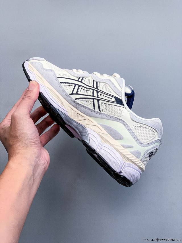 Asics Gel-Nyc 2055 features a breathable mesh upper with some synthetic leather accents, and uses the new Ahar+ rubber material for enhanced durability. (Ddd 1227996F23 DDD)