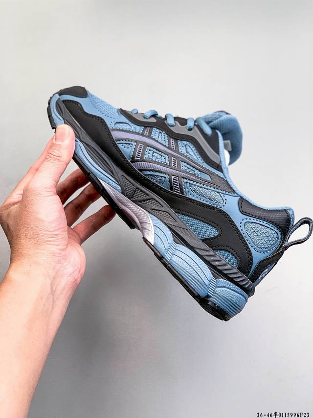 Asics Gel-Nyc 2055 features a breathable mesh upper with some synthetic leather accents, and utilizes the new Ahar+ rubber material for enhanced durability. (DDD 0115996F23 DDD)