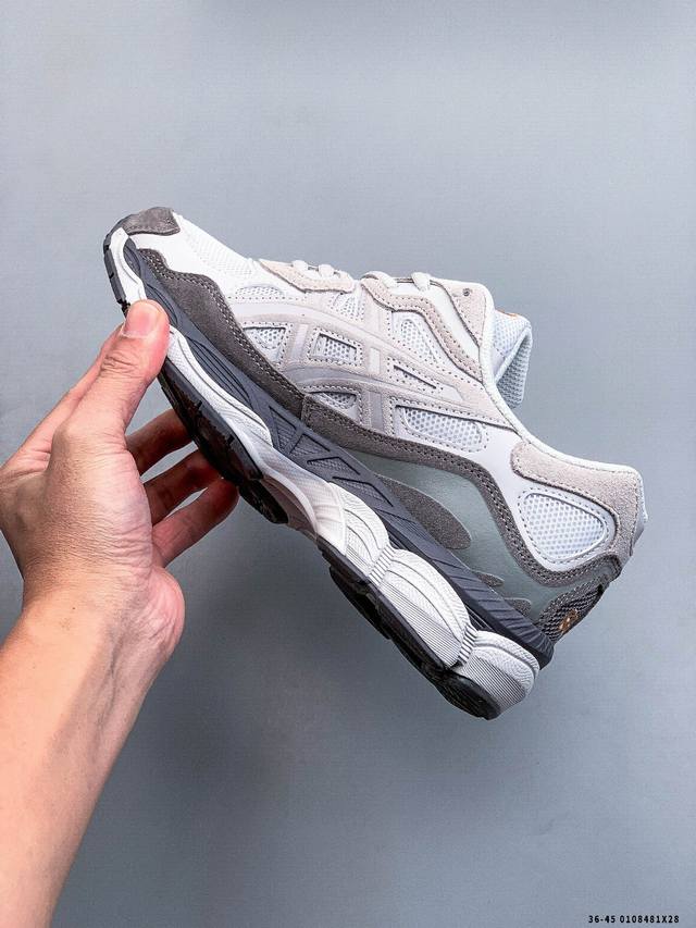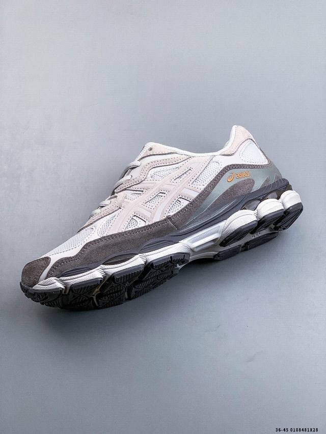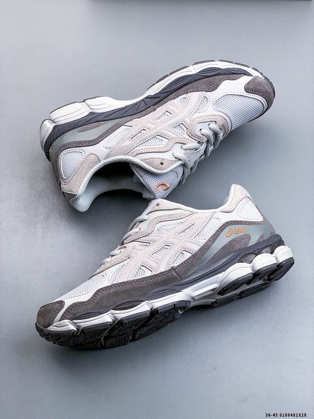 Asics Gel-Nyc 2055 features a breathable mesh upper with some synthetic leather accents, and utilizes the new Ahar+ rubber material for enhanced durability. (DDD 0108481X28 DDD)