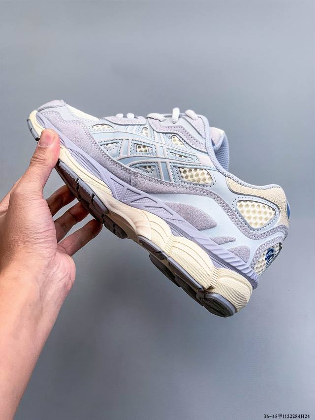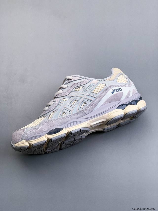 Asics Gel-Nyc 2055 features a breathable mesh upper with some synthetic leather accents, and utilizes the new Ahar+ rubber material for enhanced durability. (DDD 1122284H24 DDD)