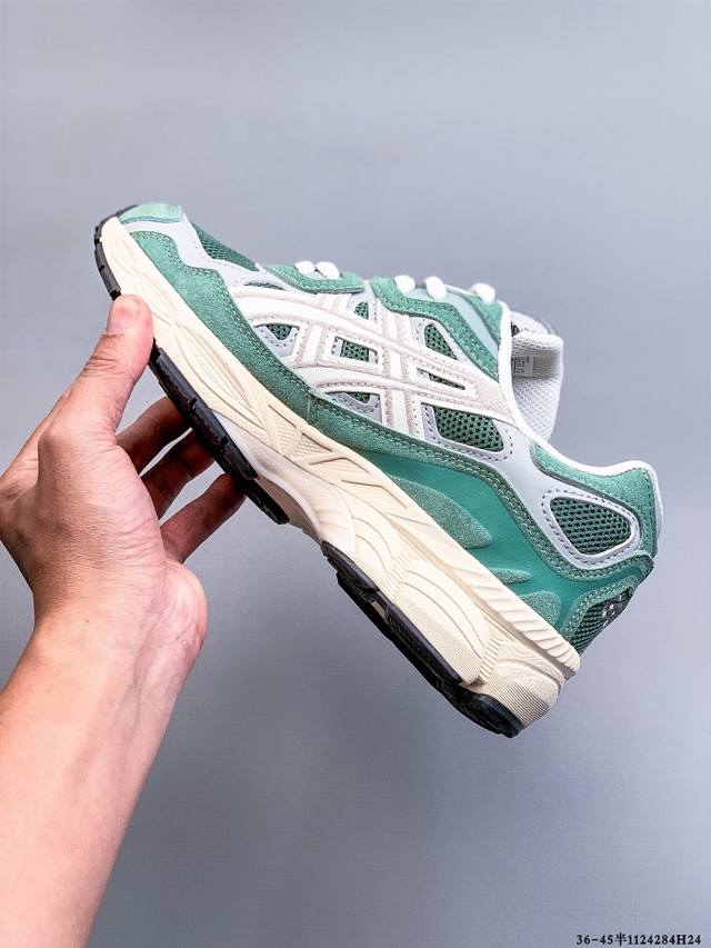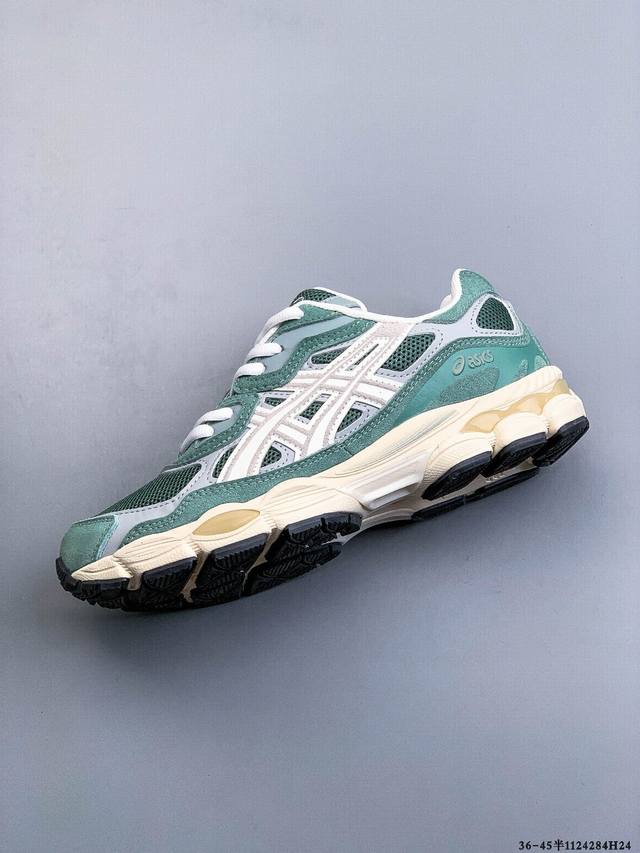 Asics Gel-Nyc 2055 features a breathable mesh upper with some synthetic leather accents, and utilizes the new Ahar+ rubber material for enhanced durability. (DDD 1124284H24 DDD)