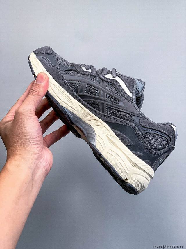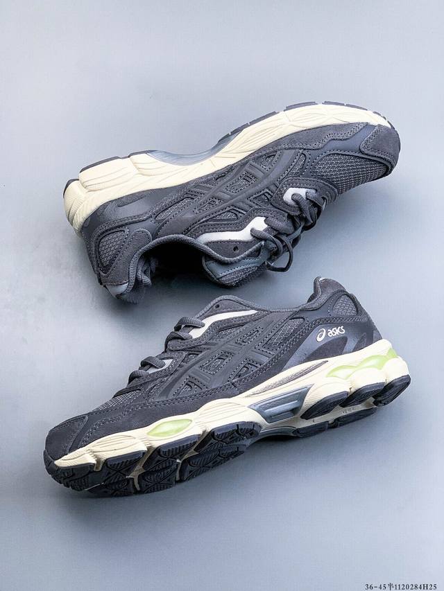 Asics Gel-Nyc 2055 features a breathable mesh upper with some synthetic leather accents, and utilizes the new Ahar+ rubber material for enhanced durability. (DDD 1120284H25 DDD)
