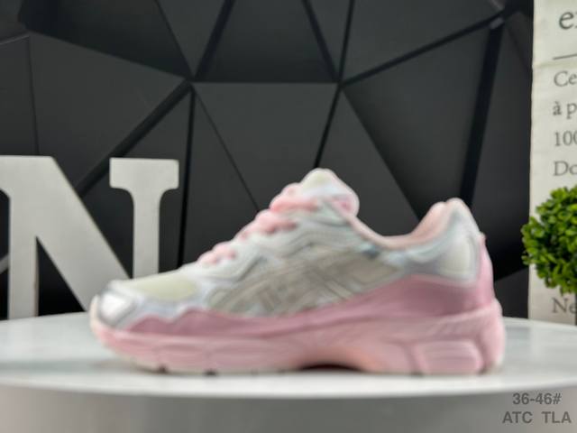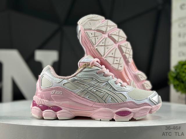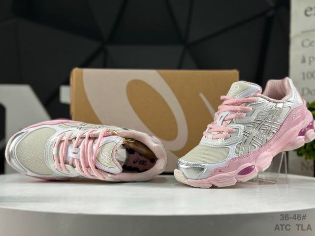 Asics Gel-Nyc. Asics breathable mesh upper combined with some synthetic leather materials, using the new Ahar+ rubber material for enhanced durability. Product Code: 1203A571-100. Size: As shown in the bottom right corner of the image.