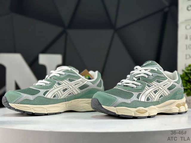 Asics Gel-Nyc. Asics breathable mesh upper with some synthetic leather sections, using the new Ahar+ rubber material for enhanced durability. Product Code: 1203A383-302. Size: As shown in the bottom right corner of the image.