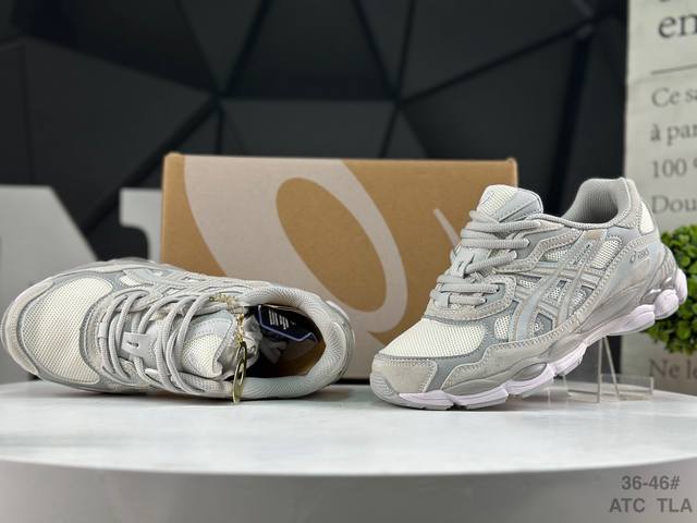 Asics Gel-Nyc. Asics breathable mesh upper with some synthetic leather sections, using the new Ahar+ rubber material for enhanced durability. Product Code: 1203A663-101. Size: As shown in the bottom right corner of the image.