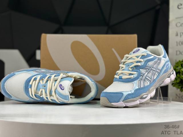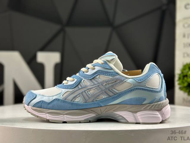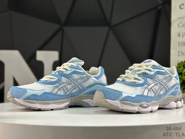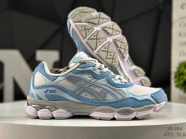 Asics Gel-Nyc. Asics breathable mesh upper with some synthetic leather sections, using the new Ahar+ rubber material for enhanced durability. Product Code: 1203A383-107. Size: As shown in the bottom right corner of the image.