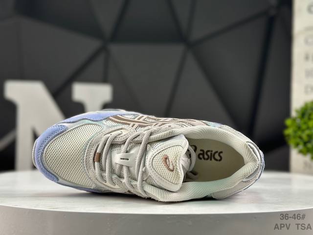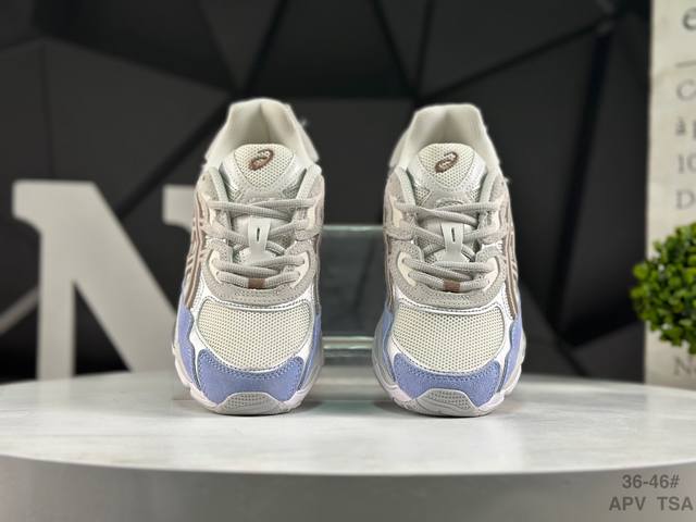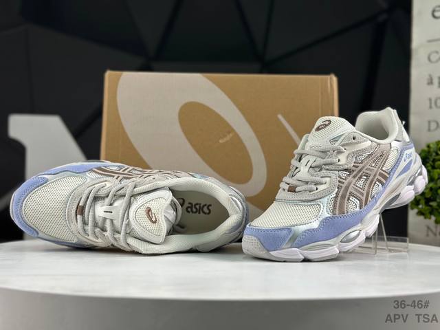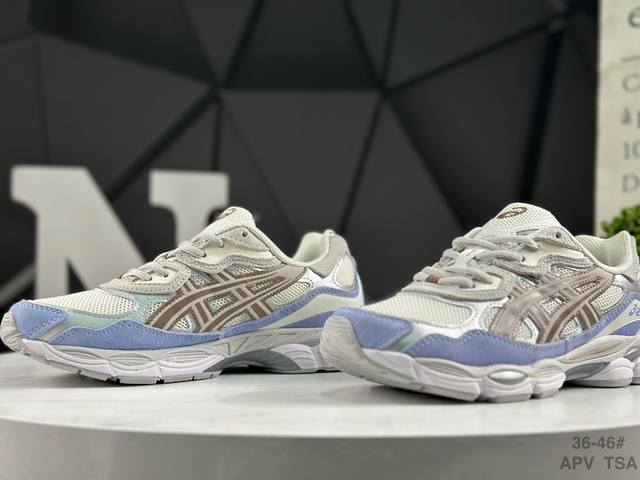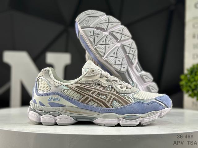 ASICS Gel-Nyc Original Version ASICS Sports Casual Breathable Professional Running Shoes. The upper is made of suede and mesh, offering breathability and comfort while maintaining a casual and stylish look. The simple color scheme showcases the brand's heritage and leads the retro trend. The tiger claw logo adds stability. The shoe features a supportive system, a classic wide silhouette, and anti-shift design for enhanced fit and comfort. The upper's ventilation holes provide breathability. Product Code: 1203A383-023. Sizes: 36-45. (Note: The last part, "