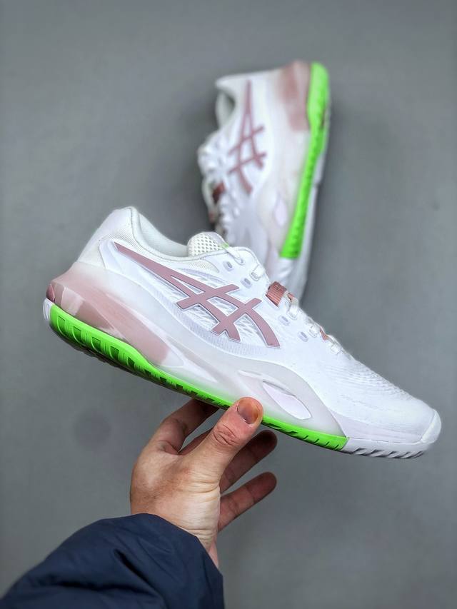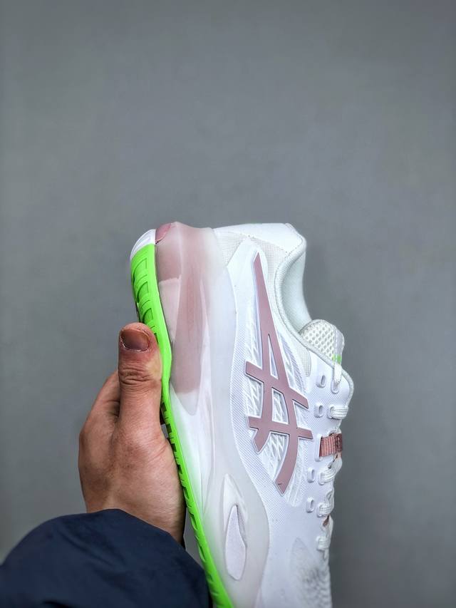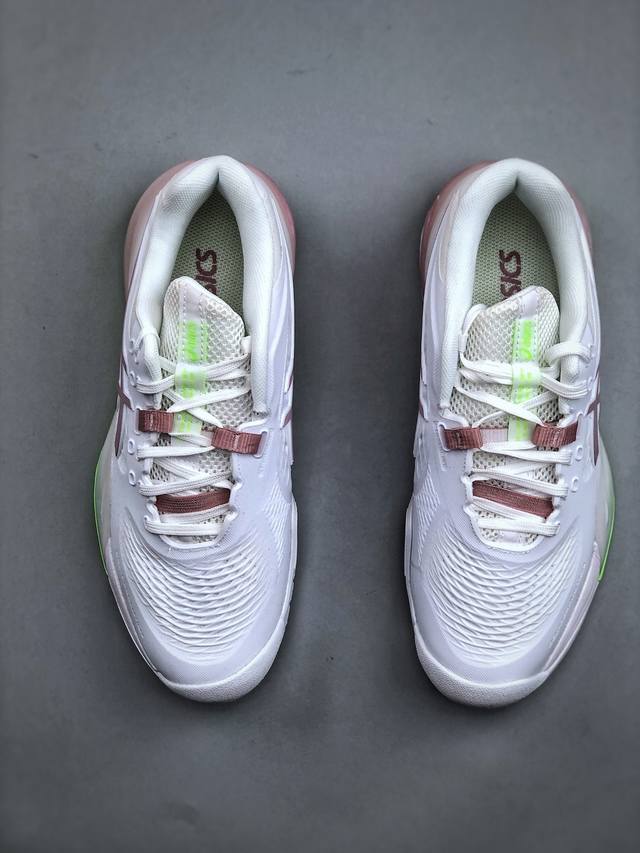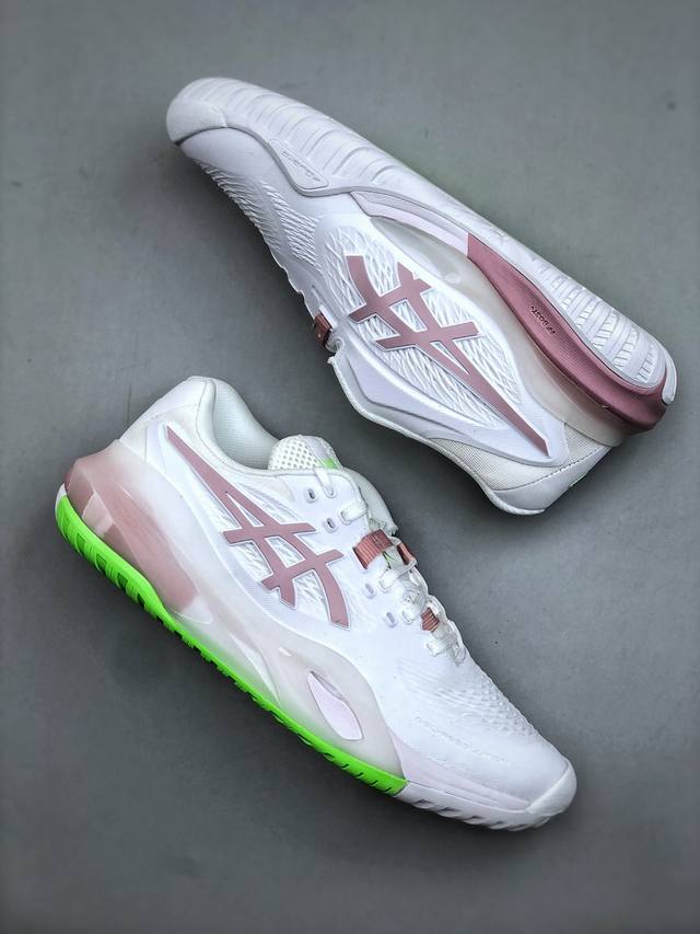 Asics Gel-Resolution X Professional Tennis Shoes - Lightweight, Comfortable, and Breathable. Features a full-drop plastic upper, upgraded 3D visible Gel cushioning in the midsole, and new Flytefoam Blast cushioning technology in the midsole. Product Code: 1042A279-104. Sizes: 36-40. (Half-DDD)