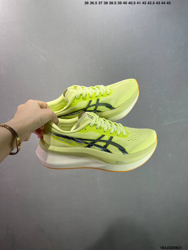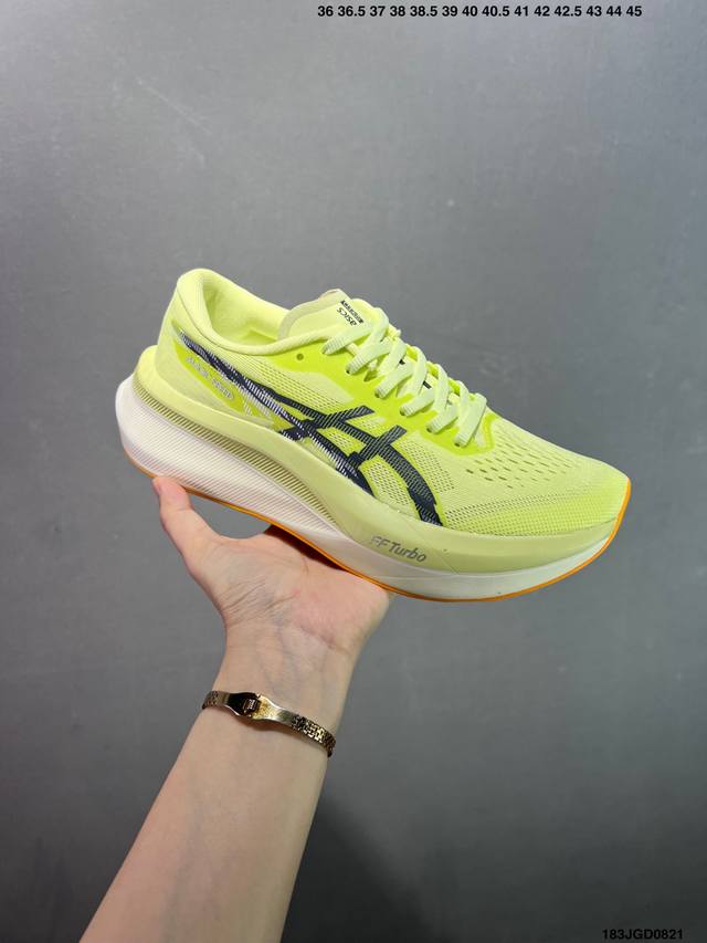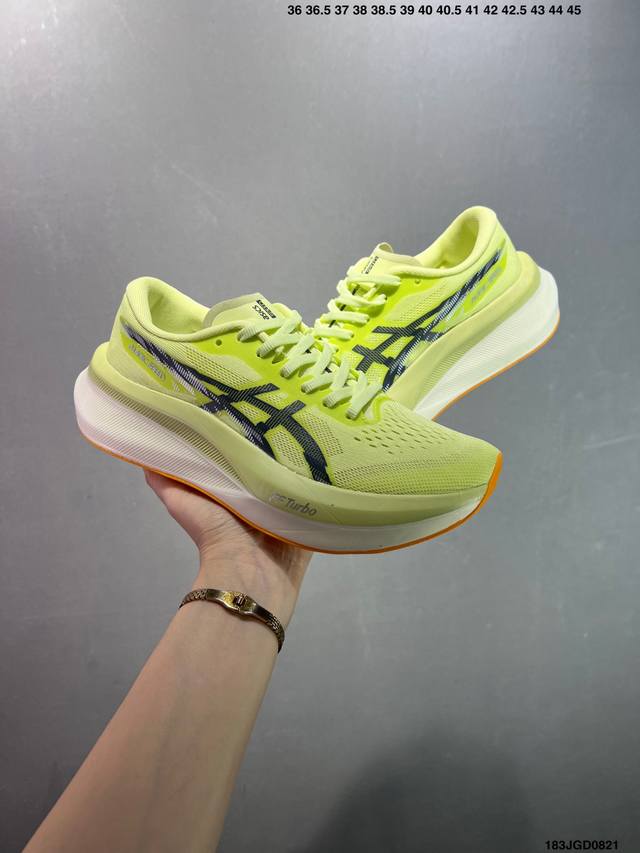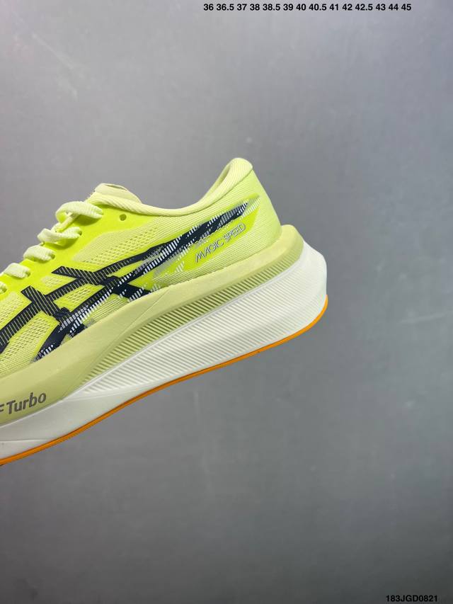 Asics Magic Speed 4 Stability Running Shoes. The upper features a double-layer jacquard mesh design for improved support and breathability. The heel incorporates T-Gel stability technology to enhance overall support and structure, reducing impact load on the body. The innovative midsole offers lightweight responsiveness. Product Code: 1011B875-751. Size: As shown. Code: 183Jgd0821.