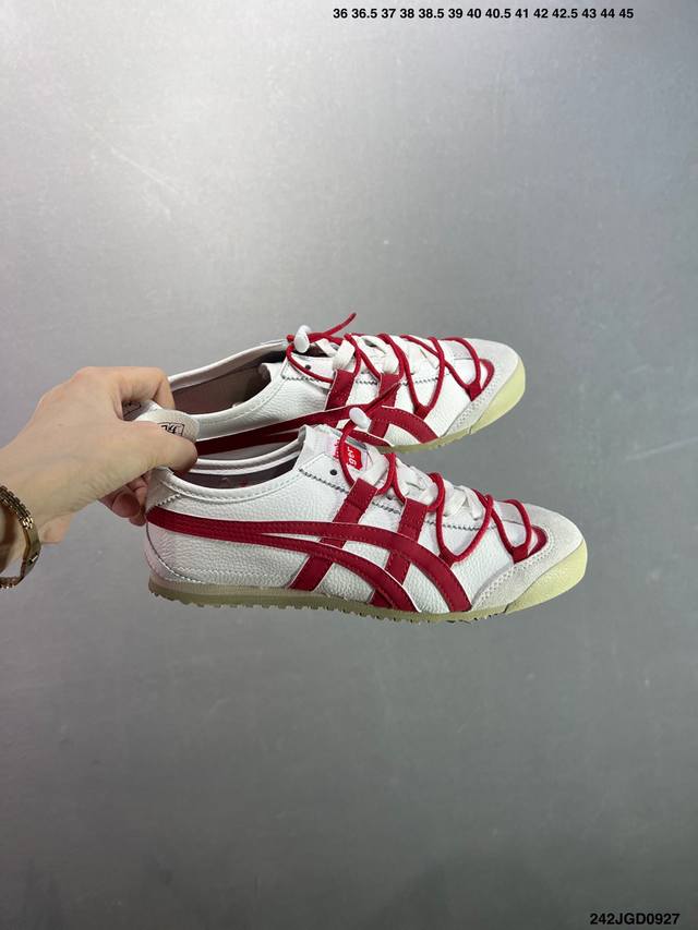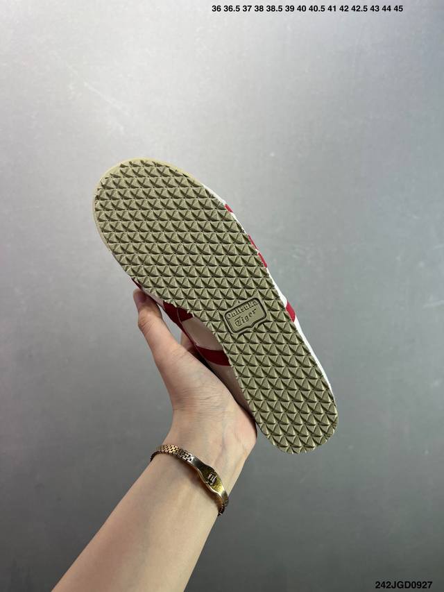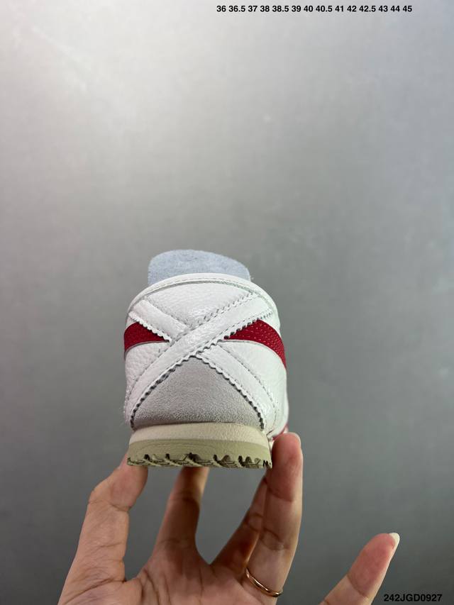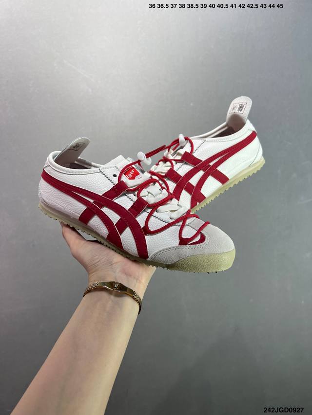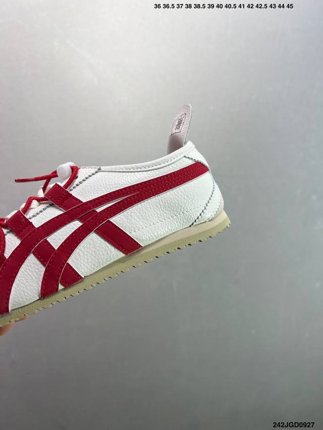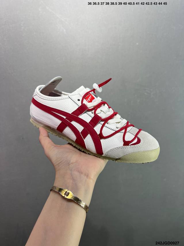 Asics men's and women's shoes, genuine half-size, made in Japan, a classic and established brand - Onitsuka Tiger Mexico 66. Classic Mexican series, retro and versatile sneakers, casual sports shoes, and jogging shoes. Made with soft cowhide uppers, the shoes feature a rubber content exceeding national standards and a wear-resistant and bend-resistant RB outsole. The styles, colors, and shapes of these products embody the pursuit of comfort and perfection in detail. Footwear emphasizes the rigor of handcrafting, with a design style that blends comfort and wearability. Focusing on perfect details and a unique charm, they maintain a sense of stability while also maintaining a relaxed sense of fashion . Sizes: 36-44, including half sizes. Item No.: 242Jgd0927.
