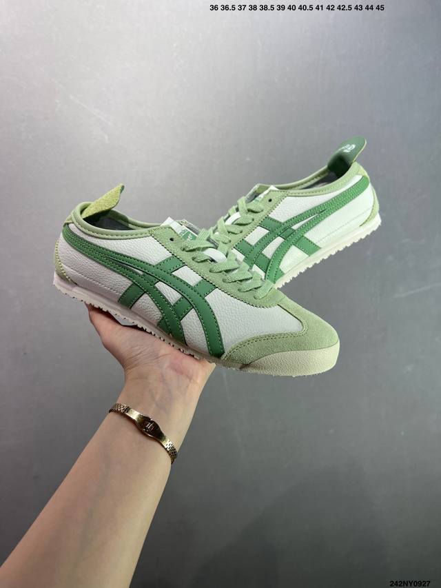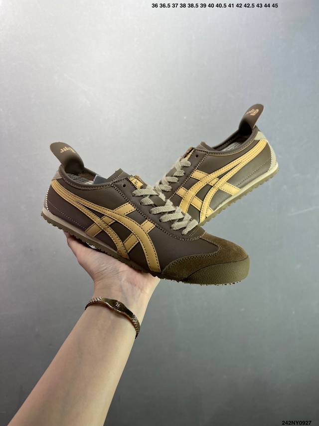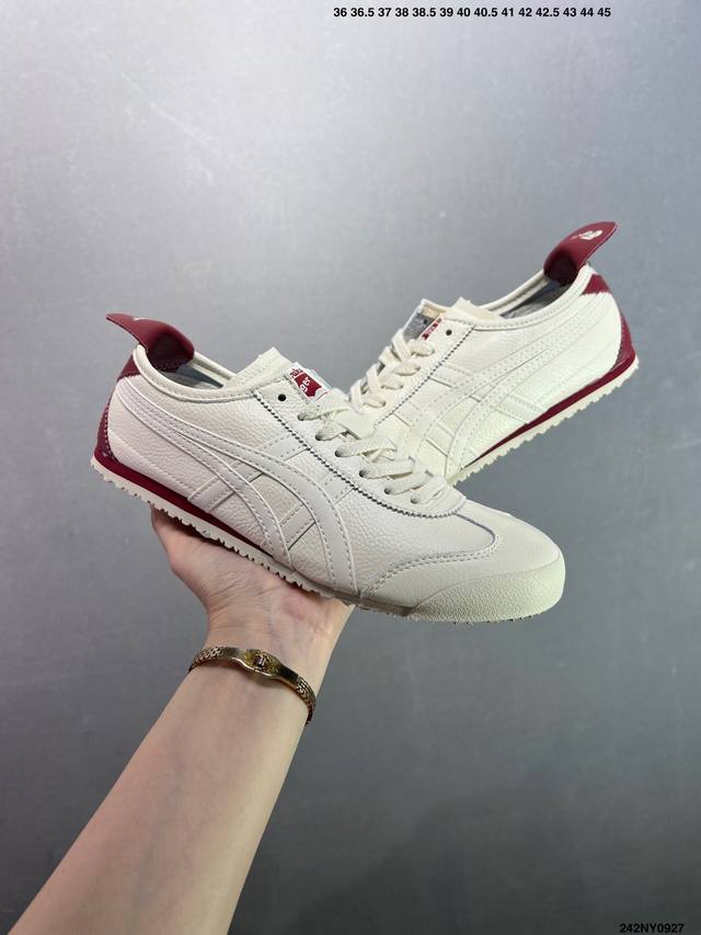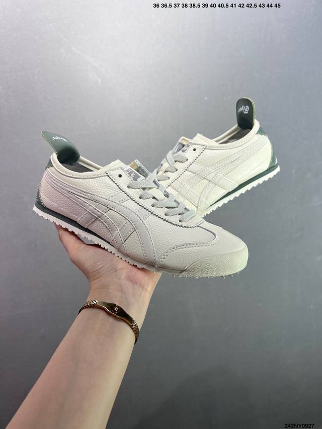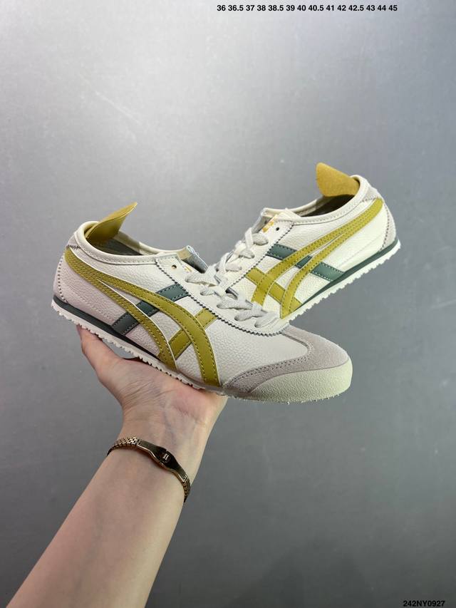 Asics men's and women's shoes, genuine half-size, made in Japan, a classic and established brand - Onitsuka Tiger Mexico 66. Classic Mexican series, retro and versatile sneakers, casual sports shoes, and jogging shoes. Made with soft cowhide uppers, the shoes feature a rubber content exceeding national standards and a wear-resistant and bend-resistant RB outsole. The styles, colors, and shapes of these products embody the pursuit of comfort and perfection in detail. Footwear emphasizes the rigor of handcrafting, with a design style that blends comfort and wearability. Focusing on perfection in detail and a unique charm, they maintain a sense of stability while also maintaining a relaxed sense of fashion . Sizes: 36-44, including half sizes. Item No.: 242Ny0927.