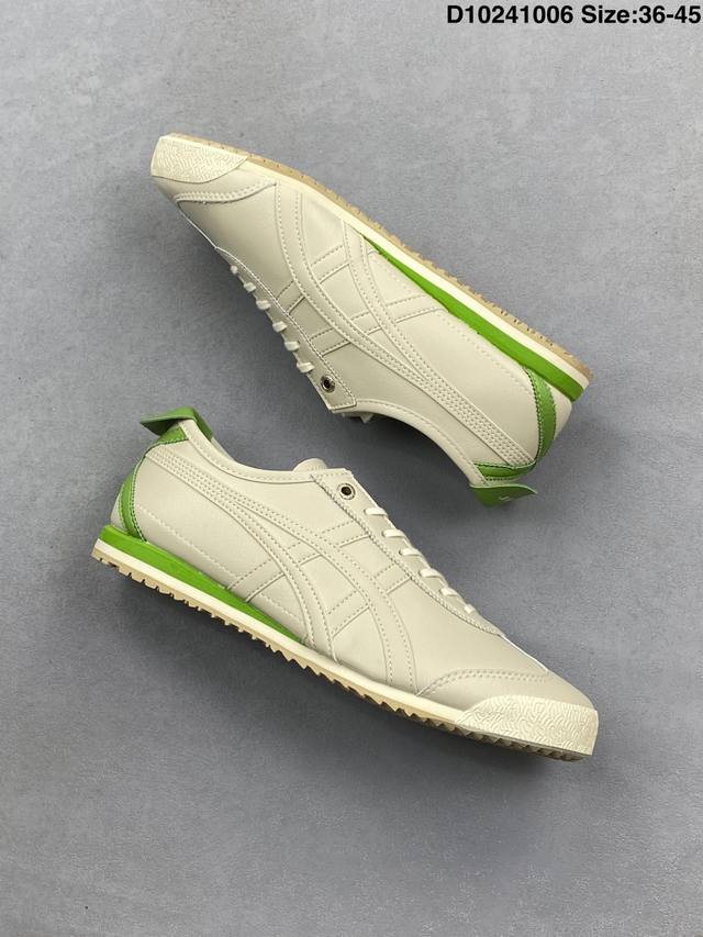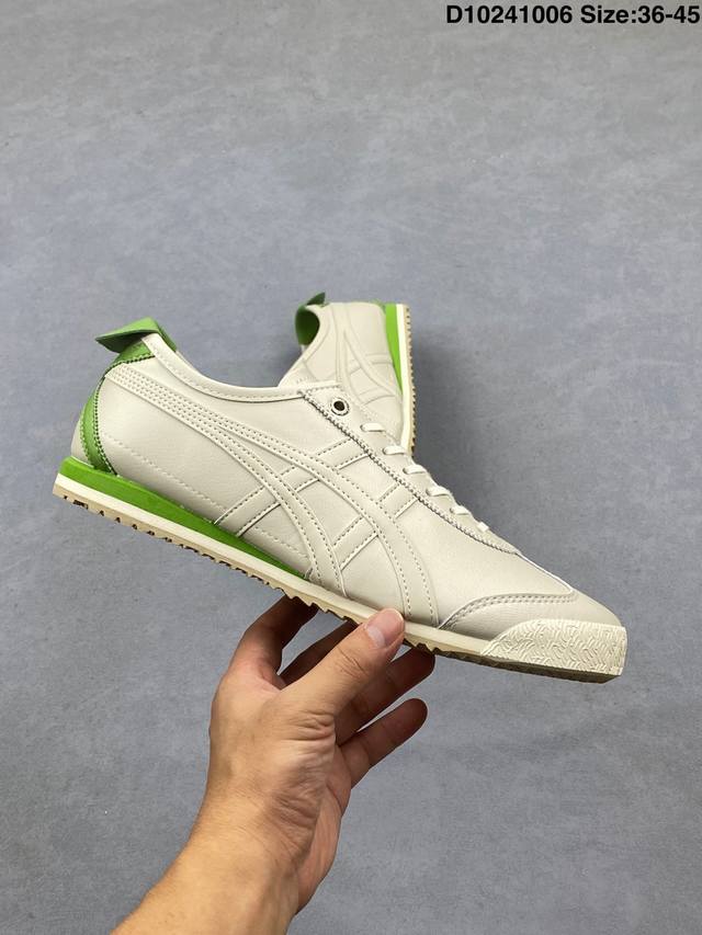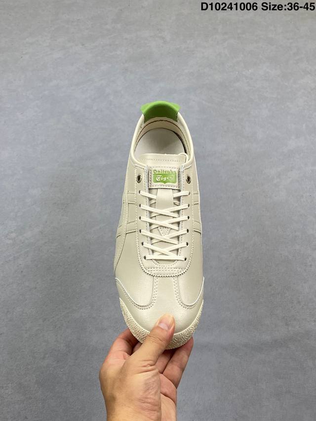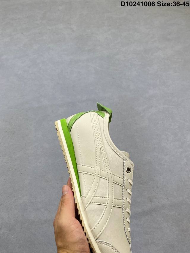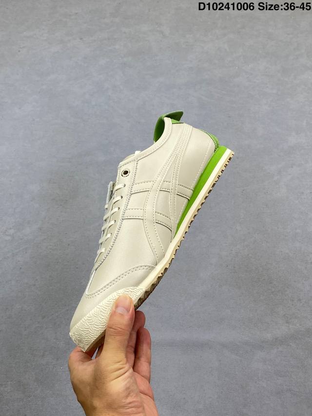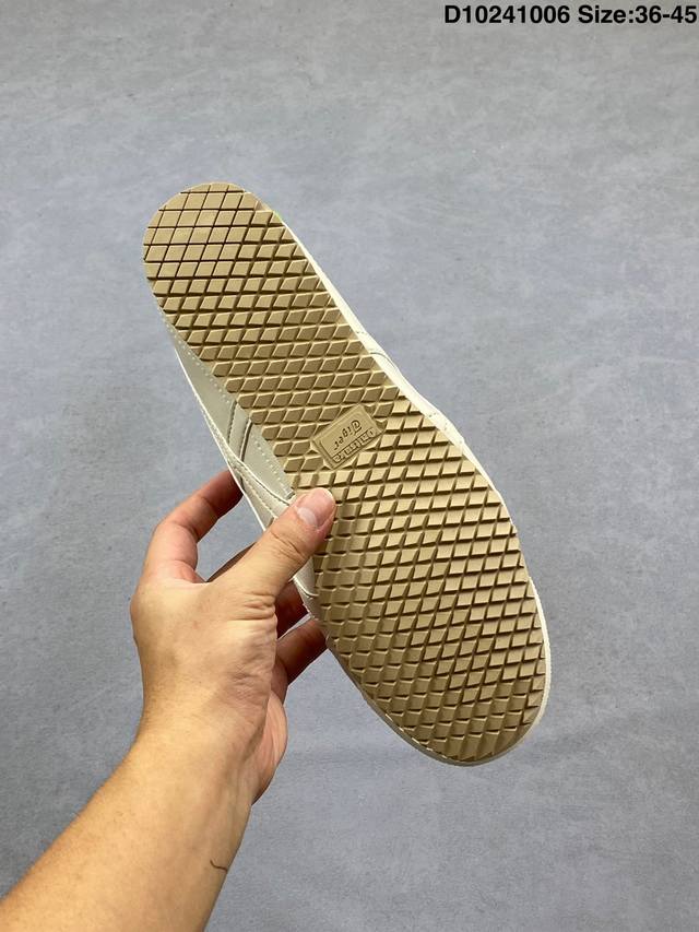 Asics Onitsuka Tiger Mexico 66 ASICS Onitsuka Tiger retro classic sneakers, the strongest version on the market. Each colorway is sourced from the original shoes and calibrated to genuine original factory top-layer cowhide. If fake, compensation guaranteed. The texture, color, and inner leather are 100% replicated. Produced by overseas order factory P, with super mature and stable workmanship and quality control. Original complete set of cardboard last development, authentic and perfect presentation, correct mold, sole texture, 1:1 replica, toe curvature height, and body curvature. No exaggeration, no misrepresentation. The shoe shape is unparalleled on the market. The texture and mold of the sole are superior to the original. The outsole has six triangles per unit, with an overall petal-like splicing. Official four-piece hangtag, original Ortholite lightweight insole, original box, original warranty card, instruction manual, stamped dustproof cardboard, midsole with stamped latex combination insole. Supports comprehensive comparison with department store products. From style, color, and shape, these shoes embody the pursuit of comfort and perfect detail. They also advocate the rigor and perfection of handcrafted production, blending comfort and wearability in a design style that emphasizes perfect details and unique charm, maintaining a stable yet relaxed sense of fashion. Product Code: 1183A872-204 Size: 36-45 (half) Code: D1024 6