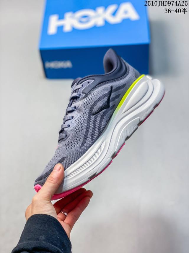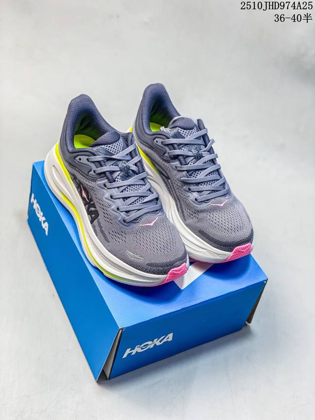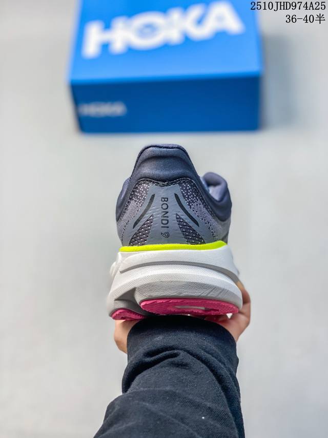 Authentic label with half sizes. Hoka new men's and women's autumn Bondi 9 road running shoes. Lightweight, comfortable, cushioned, and slip-resistant. Size: As shown. Code: 10Jhd974A25
