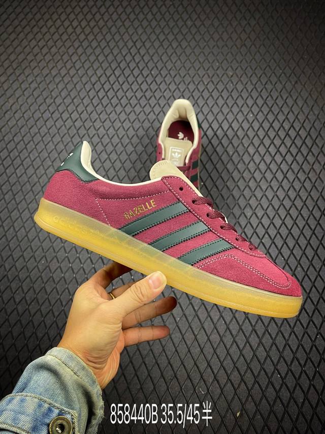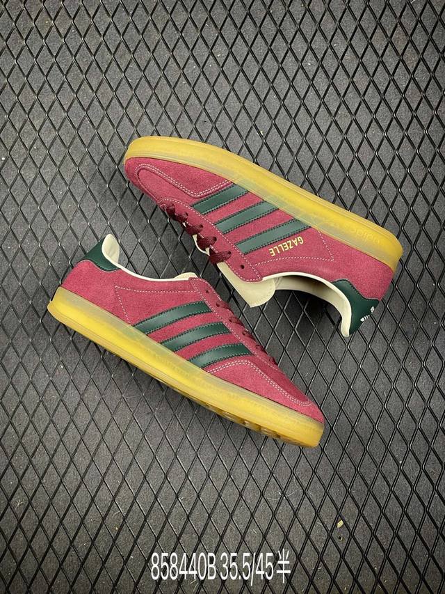 Ad Gazelle Indoor Trainers low-top, retro, versatile, casual, and athletic sneakers, Jh5403. A remake of a '90s classic! Since its debut as a football training shoe in the '60s, the Gazelle has taken the world by storm with its timeless design. This remake of the 1991 version reimagines the classic Gazelle. Crafted from leather and accented with contrasting color details, this classic is even simpler.