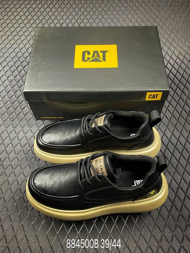Cat Bulldozer Men's Casual Leather Shoes, Original Quality, Authentic Label. Cat men's shoes from Guangdong Pure Original, a classic and popular style throughout the years. New top-grain cowhide lightweight casual shoes, wear-resistant, non-slip rubber outsole, Goodyear craftsmanship, never debonds, durable, premium top-grain cowhide, top-grade Cat men's shoes with authentic label.