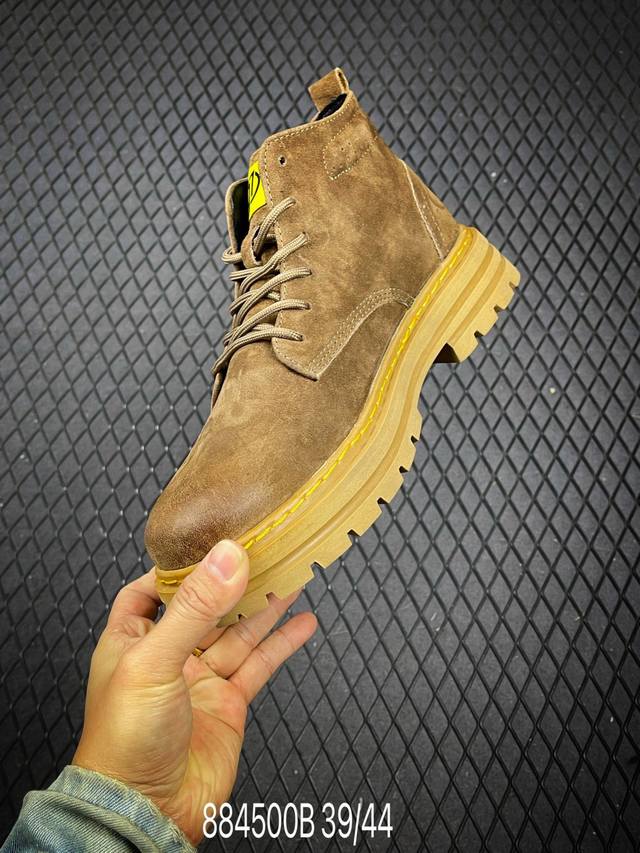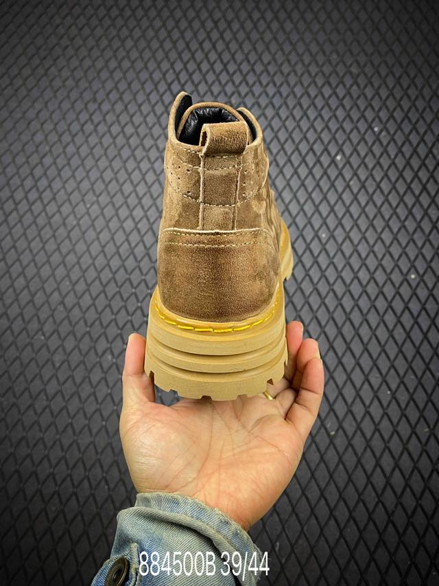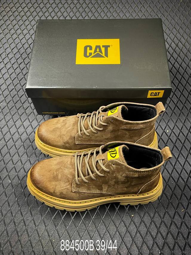 Cat men's shoes, manufactured in Zhongshan, Guangdong, using the original factory, upgraded original last and data paper pattern, with a hard top-layer nubuck cowhide upper, correct original box packaging and hangtag, lightweight anti-torsion, non-slip, and ultra-wear-resistant rubber outsole, completely replicating the original craftsmanship. The rugged bulldozer brand Cat Founder Boot, a versatile mid-top genuine leather casual work boot, is available in sizes 39, 40, 41, 42, 43, and 44. Code: 884500B