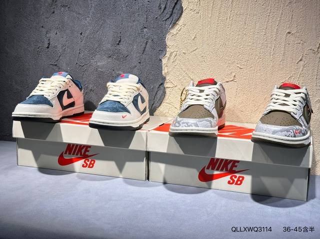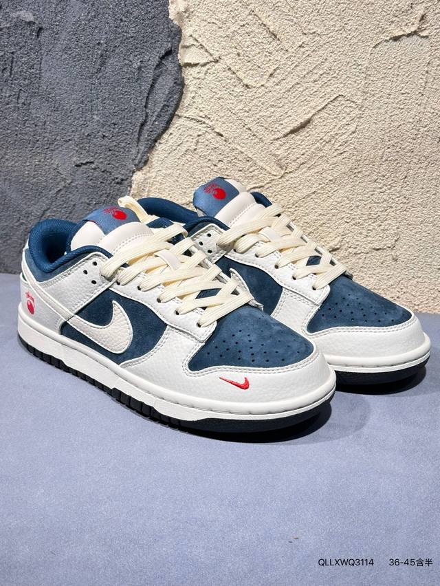 Back to school season special offer! Nk Sb Dunk Low Stussy joint---Zhongba navy blue beige white anniversary high-end customized low-top casual sneakers