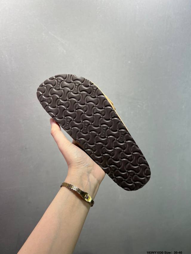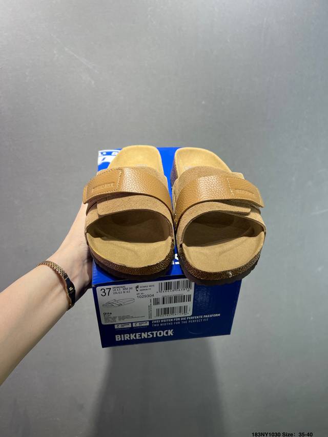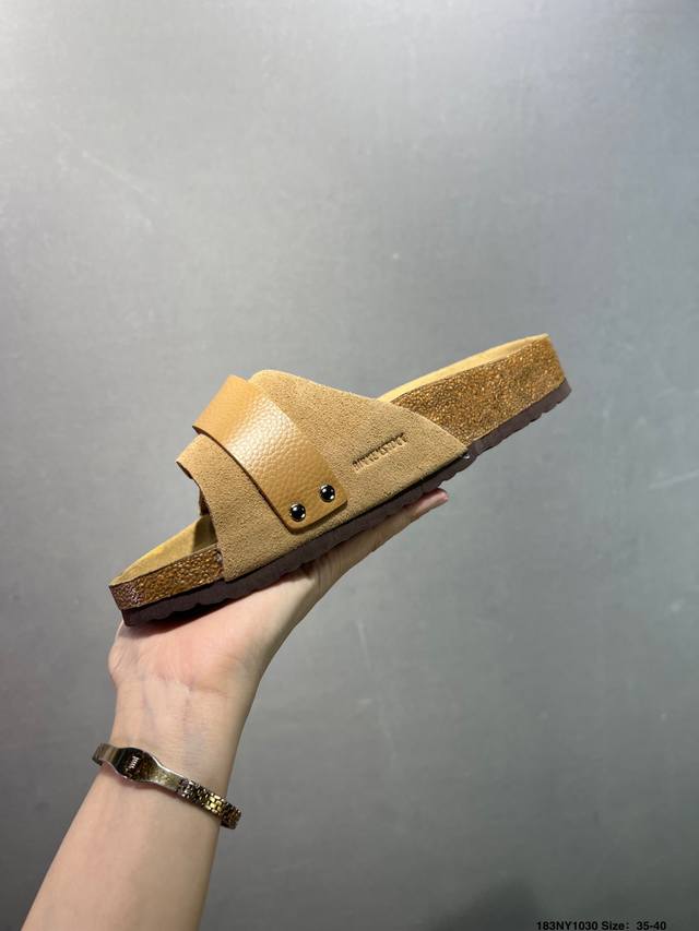 Birkenstock, a century-old German footwear brand, presents closed-toe slippers from the Guangdong-made series. Features a soft cowhide leather midsole with cushioned cork rubber, and a lightweight EVA outsole. Size: As pictured. Code: 183Ny1030