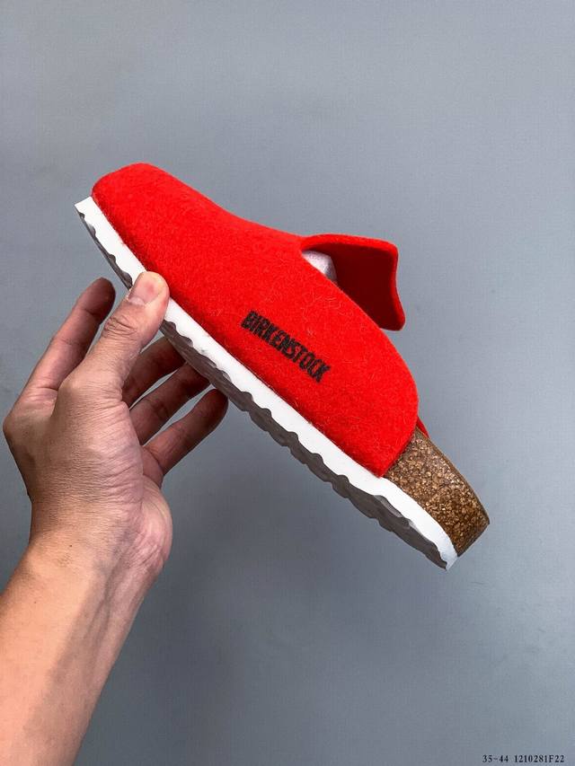 Birkenstock, a century-old German footwear brand, presents its new Autumn/Winter collection of closed-toe slippers. Made in Guangdong. Features soft cowhide leather, a cushioned cork rubber midsole, and a lightweight EVA outsole. (1210281F22)