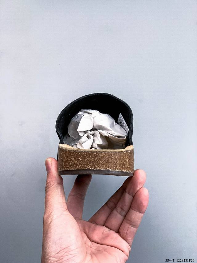 Birkenstock, a century-old German footwear brand, presents its new Autumn/Winter collection of closed-toe slippers. Made in Guangdong. Features soft cowhide leather, a cushioned cork rubber midsole, and a lightweight EVA outsole. (Item number: 1224281F20)