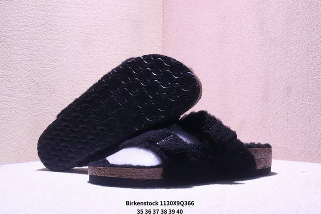 Birkenstock, a century-old German footwear brand, presents its new Autumn/Winter collection of Birkenstock half-slipper sandals with cotton and fleece lining. Made in Guangdong. Features soft cowhide leather, cushioned cork rubber midsole, and a lightweight EVA outsole. Runs one size large. Sizes: 35-40. Xm1130Q366