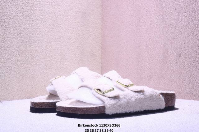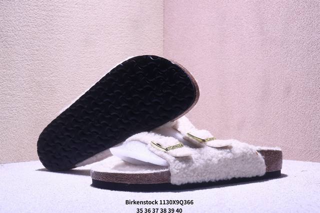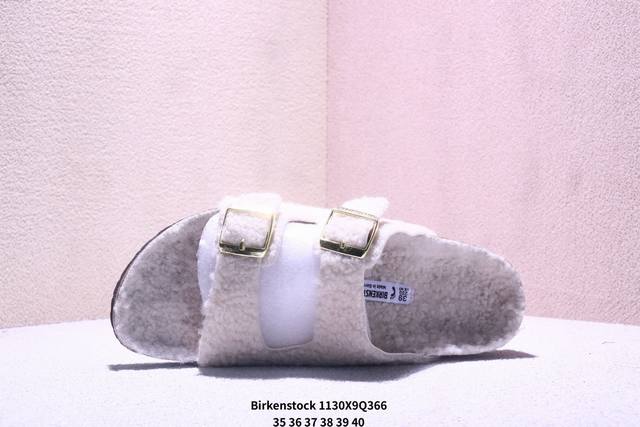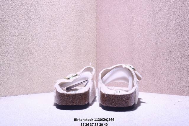 Birkenstock, a century-old German footwear brand, presents its new Autumn/Winter collection of cotton-lined, fleece-lined, closed-toe slippers. Made in Guangdong. Features soft cowhide leather, cushioned cork rubber midsole, and a lightweight EVA outsole. Runs one size large. Sizes: 35-40. Xm1130Q366