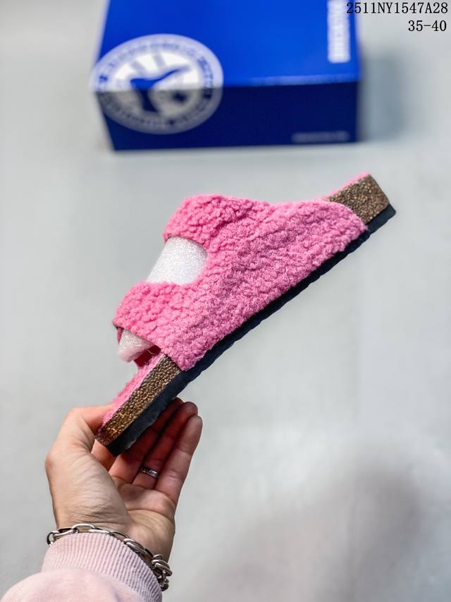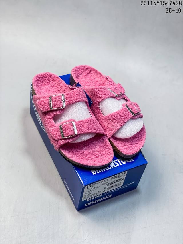 Birkenstock, a century-old German footwear brand, presents its new Autumn/Winter collection of cotton-lined, fleece-lined closed-toe sandals. Made in Guangdong. Features soft cowhide leather, cushioned cork rubber midsole, and a lightweight EVA outsole. Runs one size large. Sizes: 35-40. 11Ny1547A28