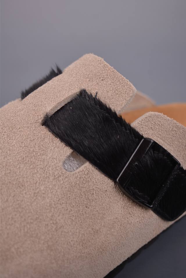 Birkenstock, a century-old German footwear brand, presents these slippers. Made