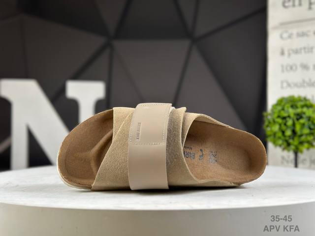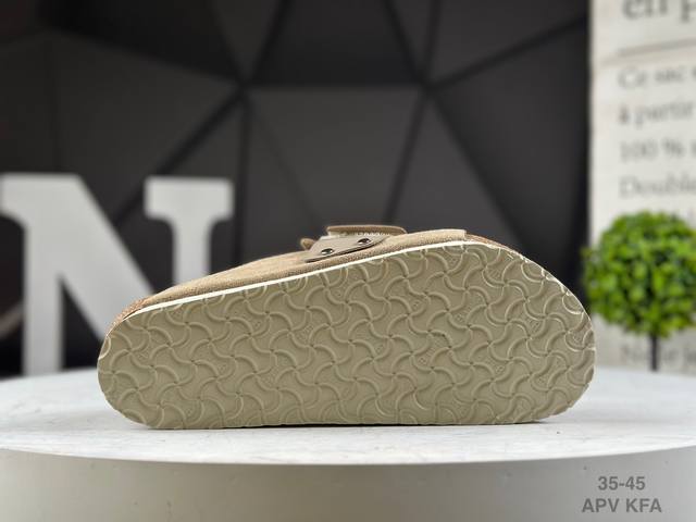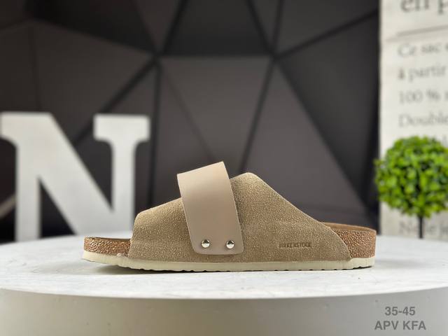 Birkenstock, a renowned German footwear brand, introduces its new autumn/winter collection of Birkenstock half-slipper sandals. These padded and velvet closed-toe slippers are made in Guangdong. # Made with soft cowhide leather midsole, cushioned with cork and rubber, and featuring an external lightweight EVA outsole. Item number: 1015573 Apv
