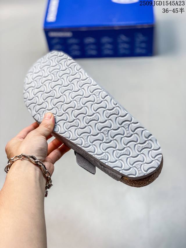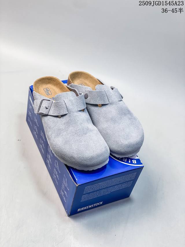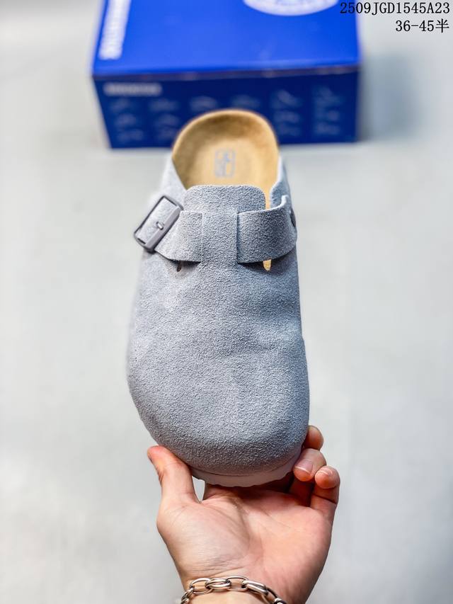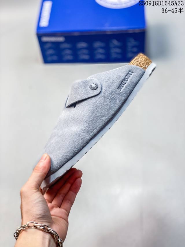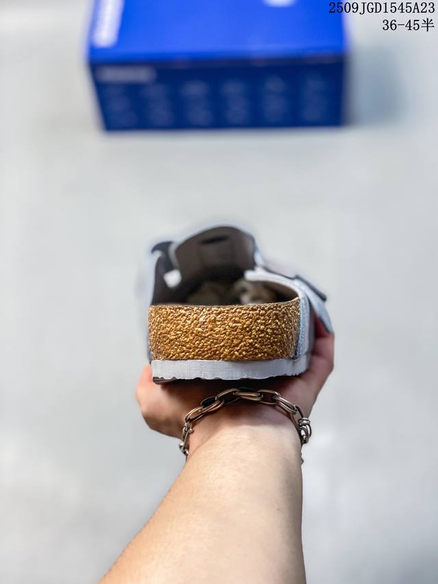 Birkenstock, a renowned German footwear brand, introduces its new autumn/winter collection of Birkenstock half-slipper sandals with padded and velvet closed-toe slippers. Made in Guangdong. #Made with soft cowhide leather. The midsole features cushioning cork and rubber. The outsole also features a lightweight EVA outsole. Size: See image. Code: 09Jgd1545A23.