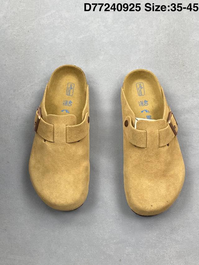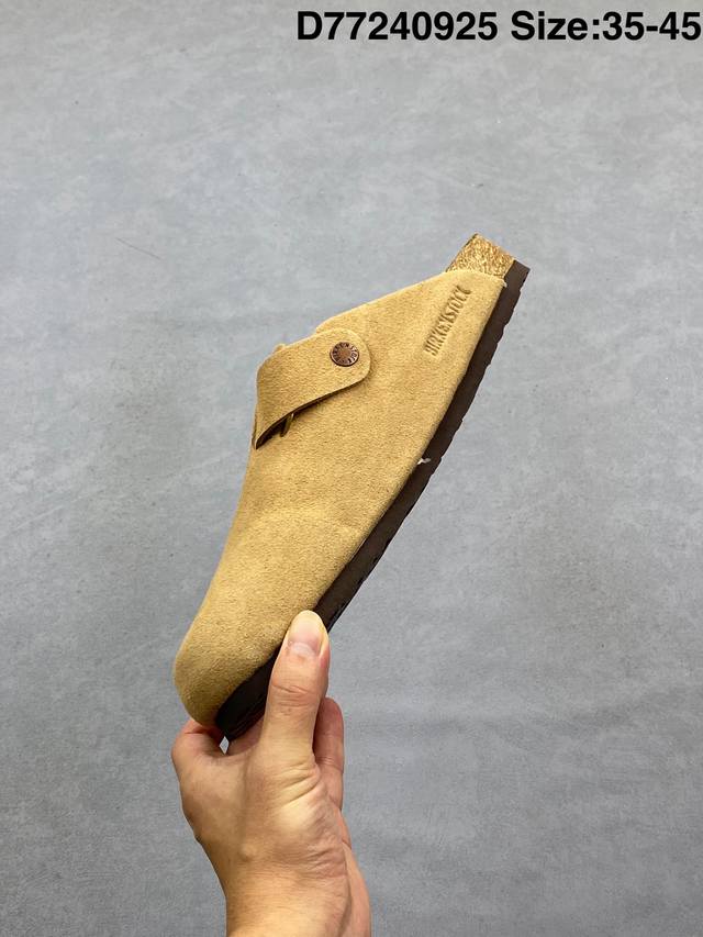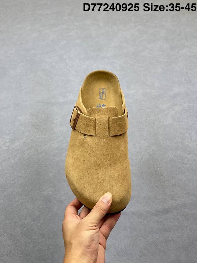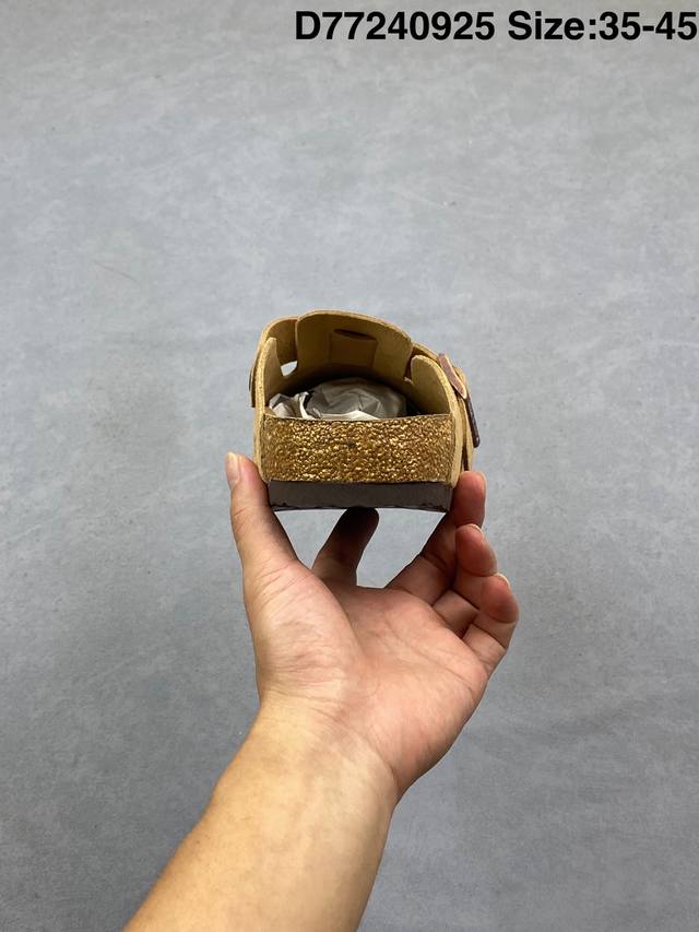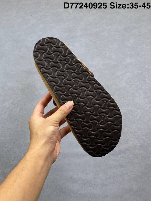 Birkenstock half-covered slippers are incredibly comfortable, featuring an ergonomically designed cork footbed that provides full support for the soles of your feet. They're a perfect everyday shoe, ideal for both young and old, and are suitable for both men and women. These earthy tones are best worn barefoot, as they won't make your feet look darker. They can also be worn with socks. These shoes are durable, textured, versatile, and stylish. They feel great on the feet, and are both stylish and comfortable. Shoe size: As shown in the picture. Code: D77240925.