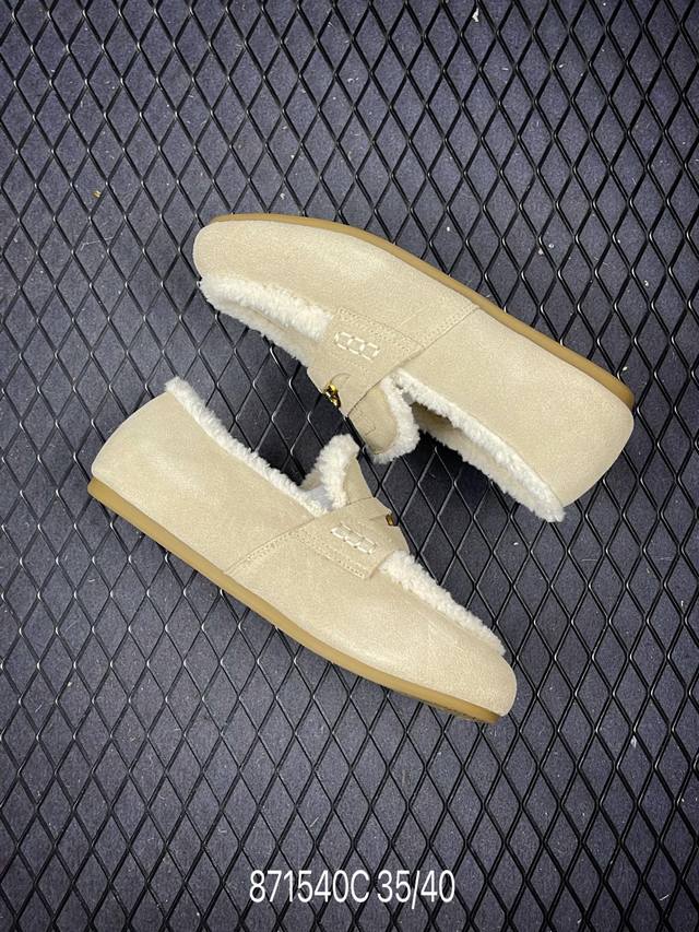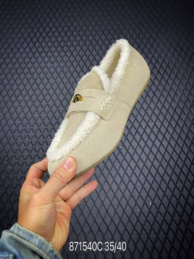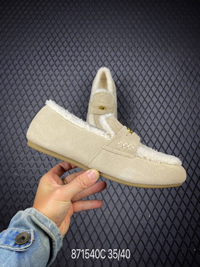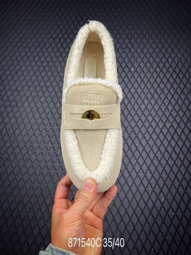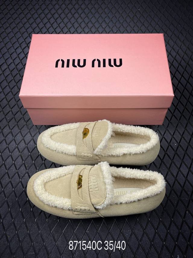 C DDD Miumiu Fall/Winter 2025 Driving Coin Loafers - 100% Pure Wool Loafers, Runway New Arrival. A blessing for driving ladies! Retro, stylish, simple, and sophisticated. Easily paired with any outfit. Very comfortable to wear. The upper features gold coins and embossed logos, showcasing a unique and classic style. DDD Sizes: 35-40 DDD Code: 871540C DDD