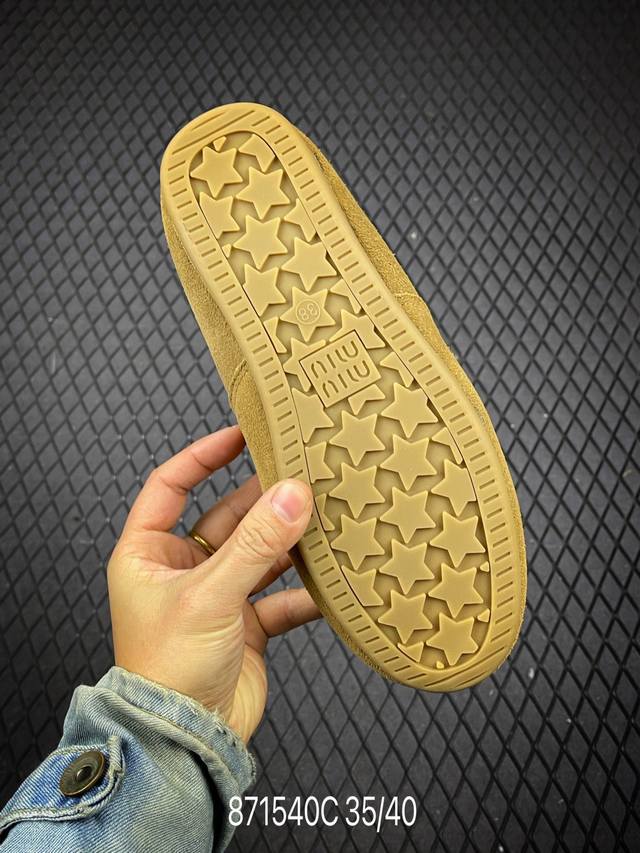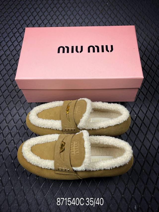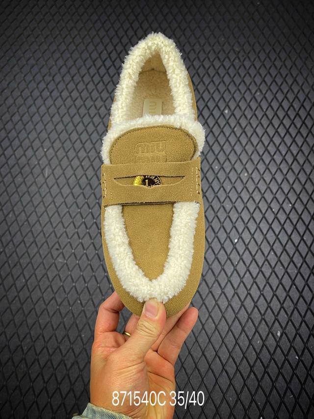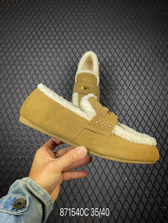 C DDD Miumiu Fall/Winter 2025 Driving Coin Loafers - 100% Pure Wool Loafers, Runway New Arrival. A blessing for driving ladies! Retro, stylish, simple, and sophisticated. Easily paired with any outfit. Very comfortable to wear. The upper features gold coins and embossed logos, showcasing a unique and classic style. DDD Sizes: 35-40 DDD Code: 871540C DDD