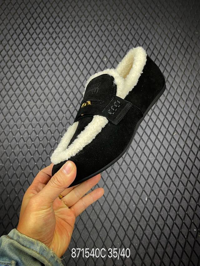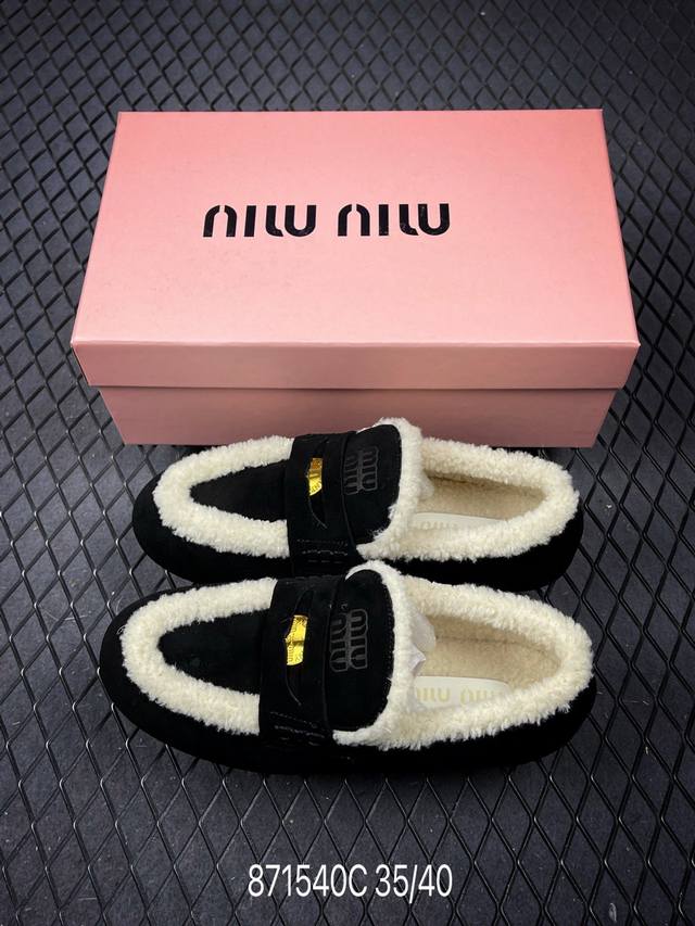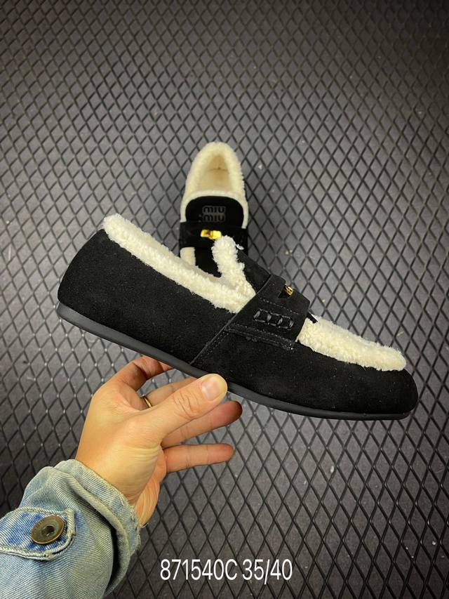 C DDD Miumiu Fall/Winter 2025 Driving Coin Loafers - 100% Pure Wool Loafers, Runway New Arrival. A blessing for driving ladies! Retro, stylish, simple, and sophisticated. Easily paired with any outfit. Very comfortable to wear. The upper features gold coins and embossed logos, showcasing a unique and classic style. DDD Sizes: 35-40 DDD Code: 871540C DDD