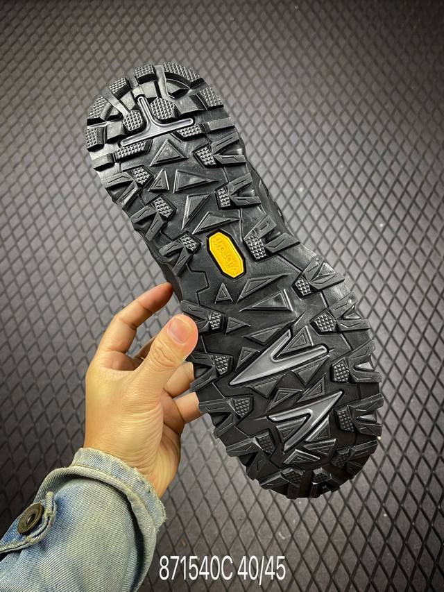 The entire series continues the mountain-ridge industrial design. The upper uses Outdry 3D lightweight technology to maintain superior performance, breathability, and dryness, easily handling various outdoor conditions. The outsole uses a Vibram Megagrip outsole, providing grip and durability. The triangular multi-directional stud design facilitates the removal of debris from the sole, helping you easily master various terrains. The Fluidframe midsole stability system features Techlite+ upgraded lightweight cushioning technology, providing soft and responsive cushioning for easy obstacle crossing.