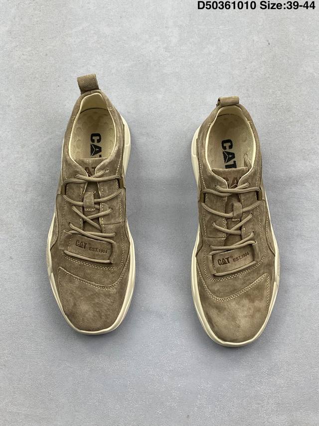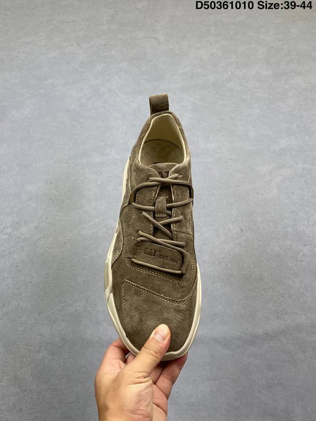 Cat casual fashion low-top men's shoes, trendy Korean style, high-quality from a Guangdong factory. Perfect for autumn and winter, lightweight, soft and comfortable sole. Original factory production, top-grain imported fine suede, high-density rubber outsole, export order. Details are almost identical to the authentic product. Easy to match and always stylish. Item number: P717911. Sizes: 39, 40, 41, 42, 43, 44. Item number: D50361010.