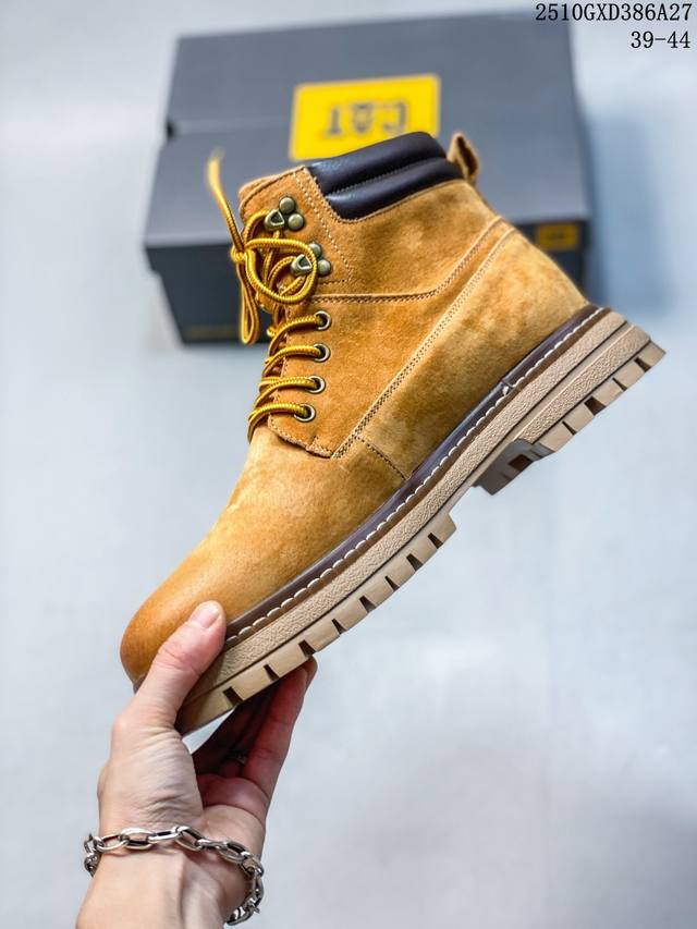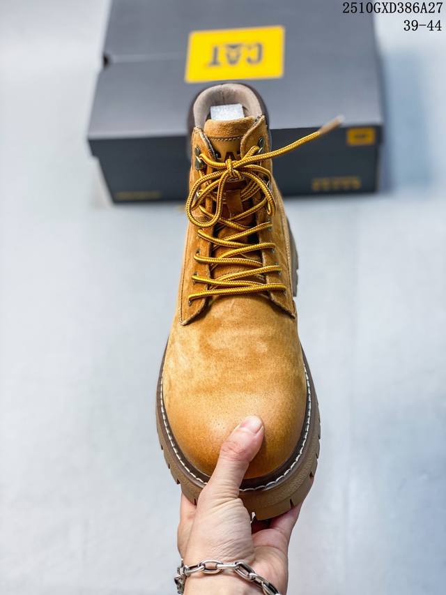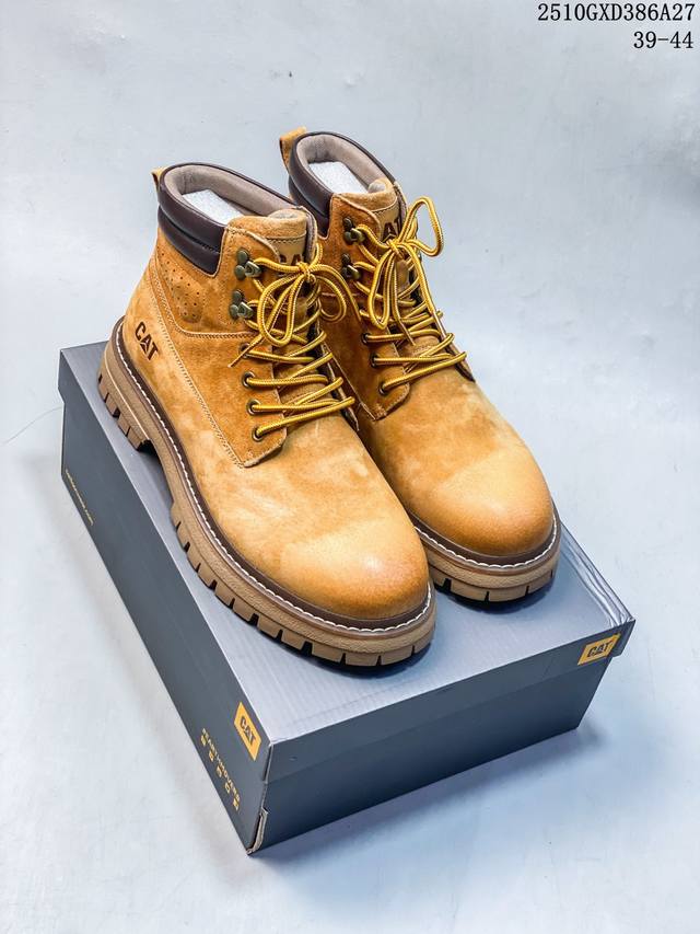 Cat, the brand's classic and versatile outdoor casual yellow boot series. #Guangdong factory quality autumn/winter new style, always fashionable and trendy. Made with imported Italian suede cowhide, all shoes are genuine cowhide. From the outsole to the hardware, all are from OEM factories. High-quality raw materials, no overcharging. First order quality strictly controlled. All items are packaged according to the official website. Winter warmth, outdoor use, casual everyday wear, a must-have for stylish men. Sizes: 38 39 40 41 42 43 44 (Runs one size large). 10Gxd386A27