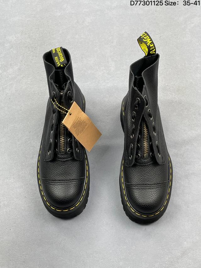 Classic evergreen style, renowned work shoe brand - Dr. Martens Sinclair 8 Eye Boots, Sinclair high-top 1462 series, detachable front zipper, eight-eyelet work boots, thick-soled, crocodile pattern, black and yellow, 22564001 DDD Size: as shown DDD Item number: D77301125 DDD Size: 35-41 DDD