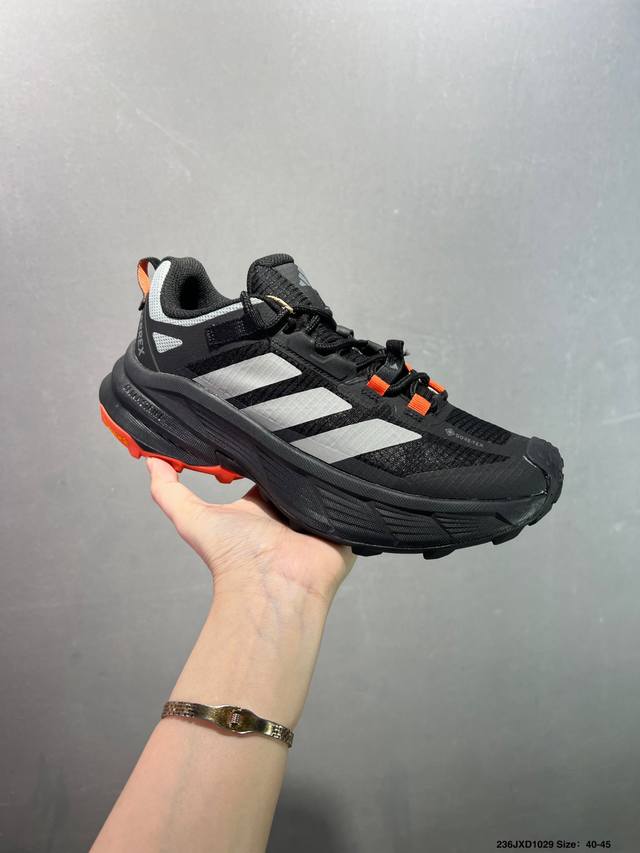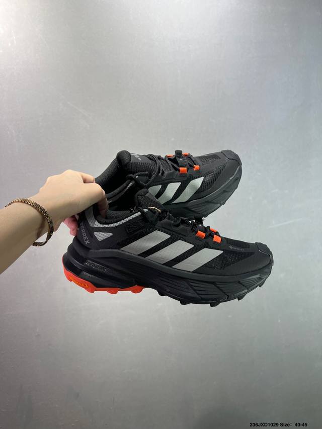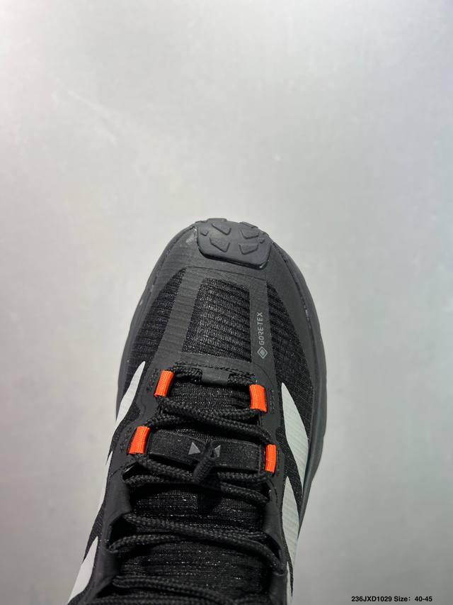 Featuring a waterproof and breathable Gore-Tex overlay, helping you confidently traverse wet roads; equipped with an EVA frame, accompanying you to confidently stride over rugged terrain. Includes a Boost midsole, designed to add vitality to your stride. Regular fit, lace-up design, mesh upper with unique accents, Gore-Tex overlay, Boost midsole, external heel clip, and ethylene vinyl acetate EVA frame. Continental rubber outsole.