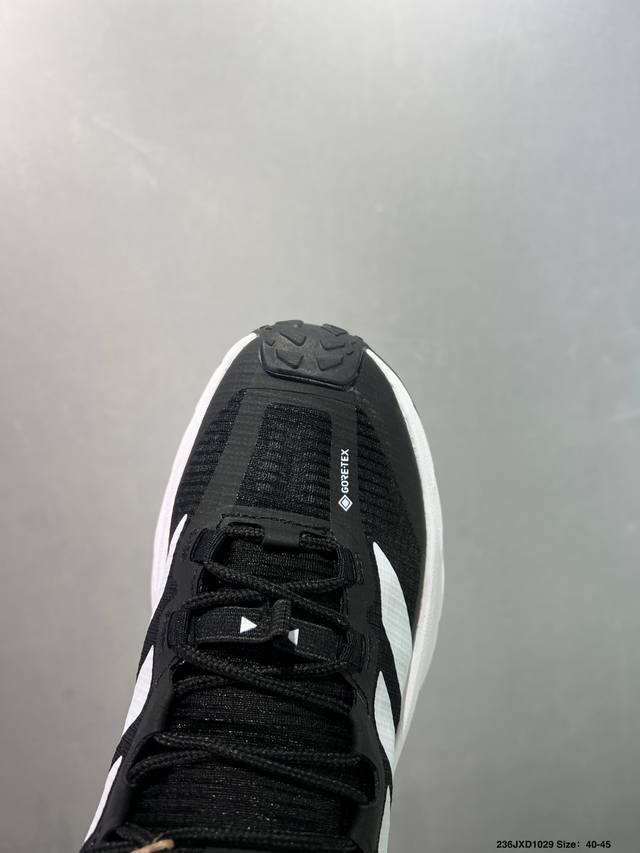 Featuring a waterproof and breathable Gore-Tex overlay, helping you confidently traverse wet roads; equipped with an EVA frame, accompanying you to confidently stride over rugged terrain. Includes a Boost midsole, designed to add vitality to your stride. Regular fit, lace-up design, mesh upper with unique accents, Gore-Tex overlay, Boost midsole, external heel clip, and ethylene vinyl acetate EVA frame. Continental rubber outsole.