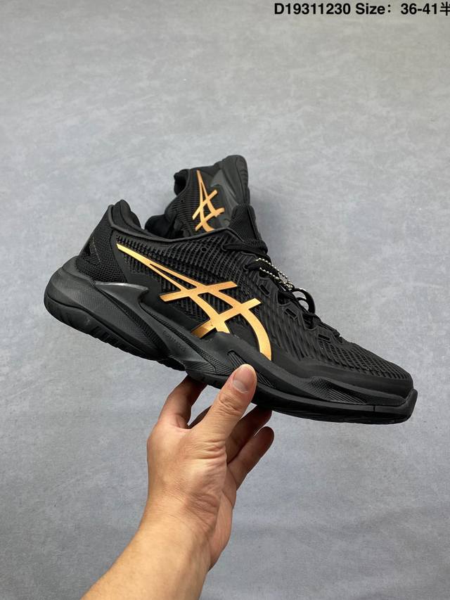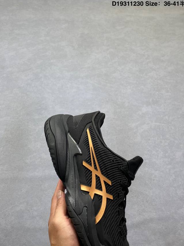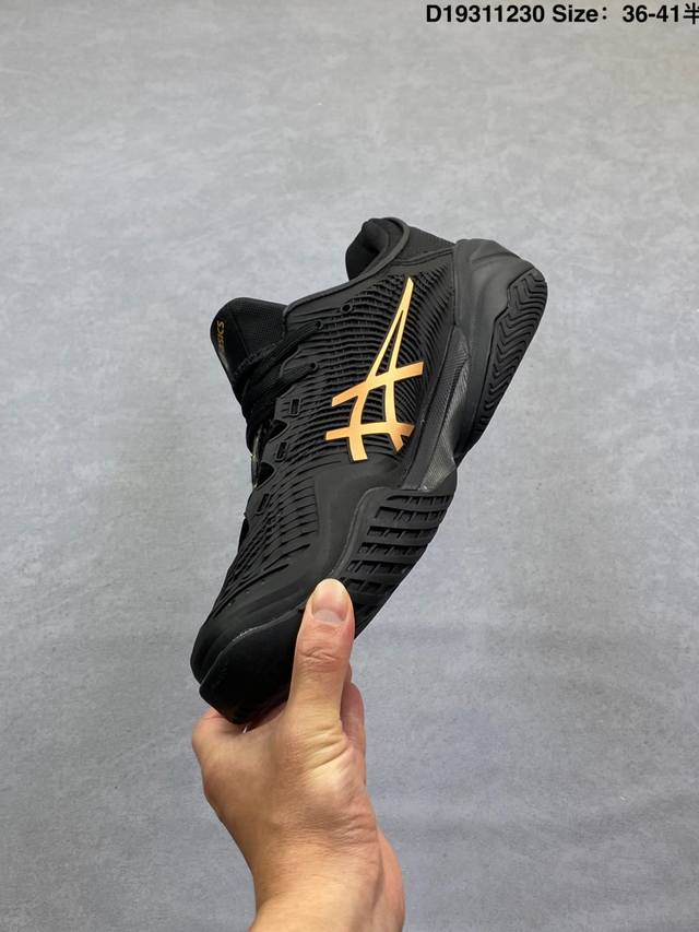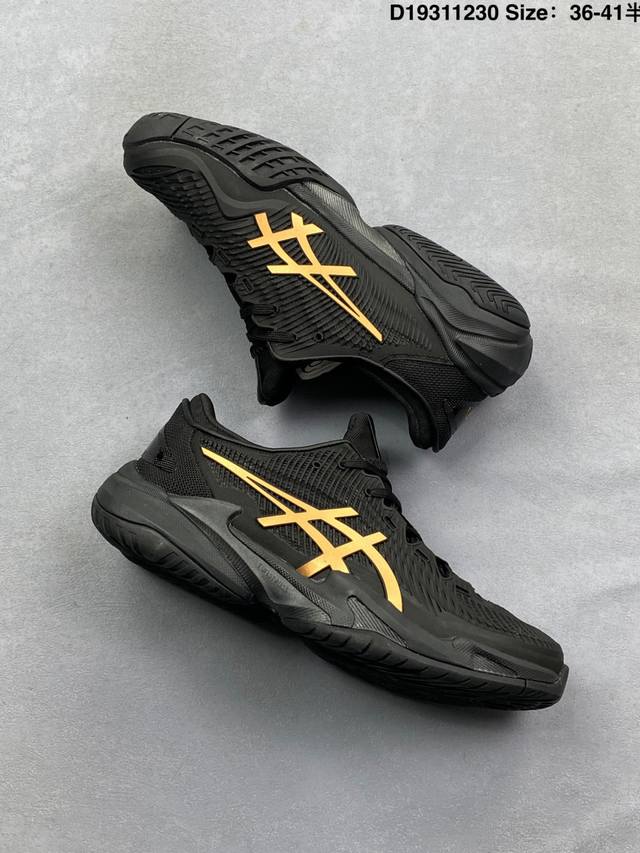 Company Grade Asics Court Ff 3 Fabric Synthetic Leather Non-Slip Wear-Resistant Breathable Low-Top Tennis Shoes. The Court Ff 3 upper features a PU support panel, providing flexibility in lateral and longitudinal movement while enhancing stability during foot movement. The sock-like collar design offers excellent support. A split midfoot stability plate improves torsional stiffness, increasing braking and propulsion. A split heel increases the contact area with the ground, reducing gliding time and body load. Product Code: 1041A527-960. Sizes: 36-41 (including half sizes). Code: D19311230.